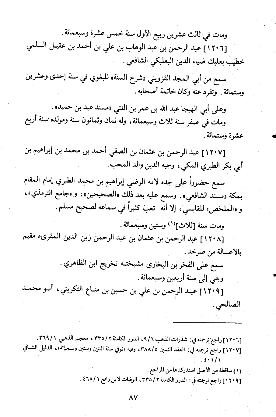 1207- عبد الرحمن بن عثمان بن الصفي أحمد بن محمد بن إبراهيم بن أبي بكر الطبري المكي وجيه الدين والد المحب.