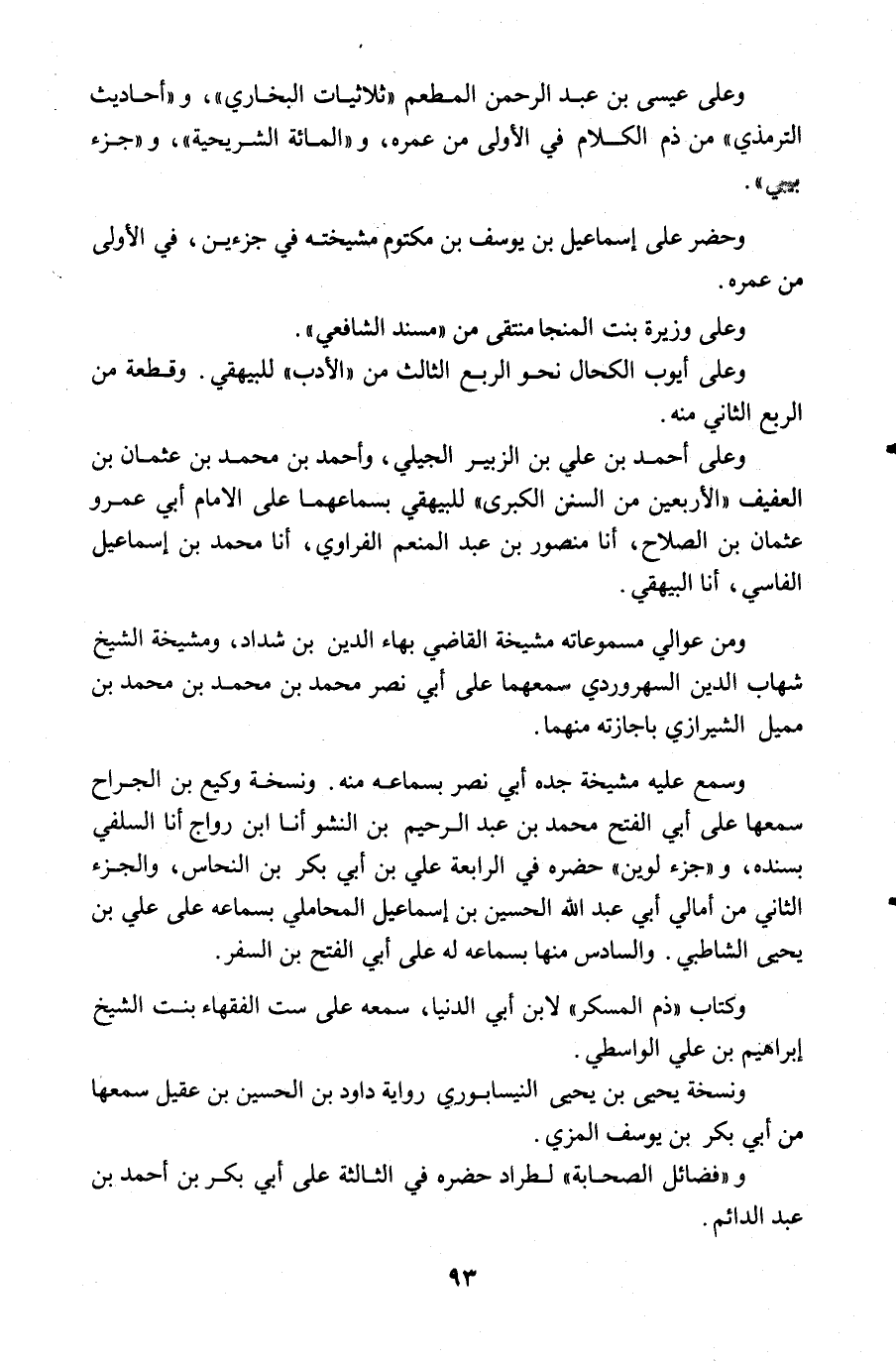 وعلى أحمد بن علي بن الزبير الجيلي وأحمد بن محمد بن عثمان بن العفيف الأربعين من السنن الكبرى للبيهقي بسماعهما على الامام أبي عمرو عثمان بن الصلاح أنا منصور بن عبد المنعم الفراوي أنا محمد بن إسماعيل الفاسي أنا البيهقي.