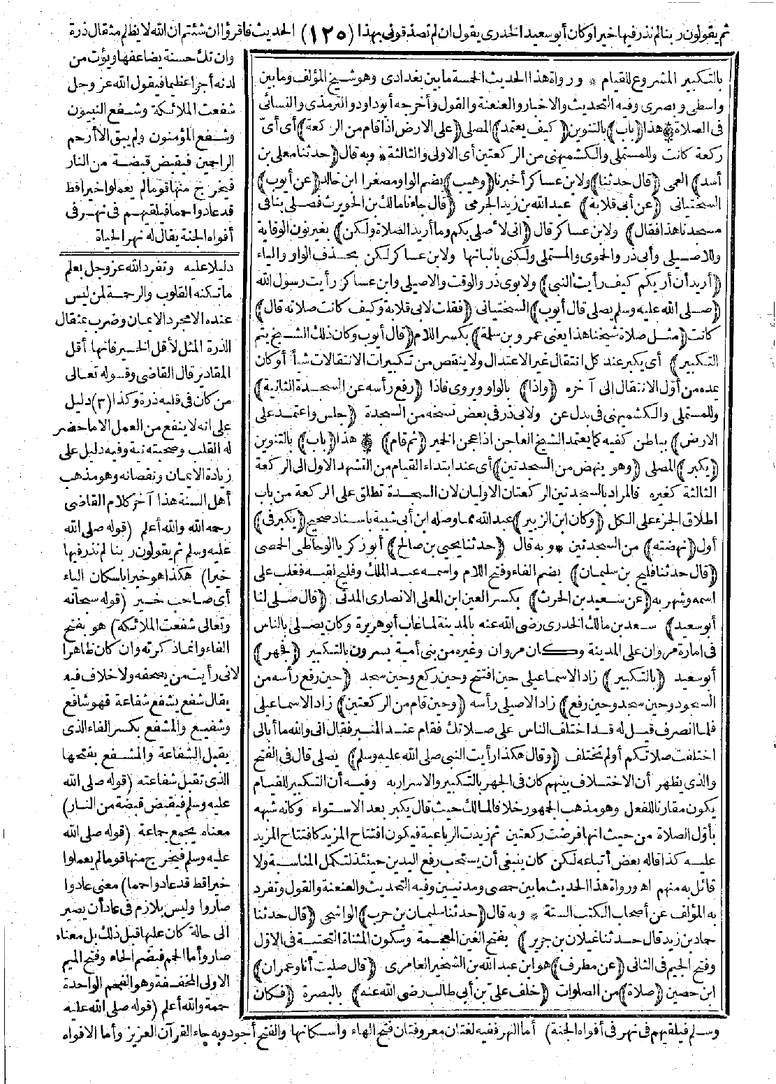 826 - حَدَّثَنَا سُلَيْمَانُ بْنُ حَرْبٍ قَالَ: حَدَّثَنَا حَمَّادُ بْنُ زَيْدٍ قَالَ: حَدَّثَنَا غَيْلاَنُ بْنُ جَرِيرٍ عَنْ مُطَرِّفٍ قَالَ: "صَلَّيْتُ أَنَا وَعِمْرَانُ صَلاَةً خَلْفَ عَلِيِّ بْنِ أَبِي طَالِبٍ -رضي الله عنه- فَكَانَ إِذَا سَجَدَ كَبَّرَ، وَإِذَا رَفَعَ كَبَّرَ، وَإِذَا نَهَضَ مِنَ الرَّكْعَتَيْنِ كَبَّرَ، فَلَمَّا سَلَّمَ أَخَذَ عِمْرَانُ بِيَدِي فَقَالَ: لَقَدْ صَلَّى بِنَا هَذَا صَلاَةَ مُحَمَّدٍ -صَلَّى اللَّهُ عَلَيْهِ وَسَلَّمَ-أَوْ قَالَ- لَقَدْ ذَكَّرَنِي هَذَا صَلاَةَ مُحَمَّدٍ -صَلَّى اللَّهُ عَلَيْهِ وَسَلَّمَ-".