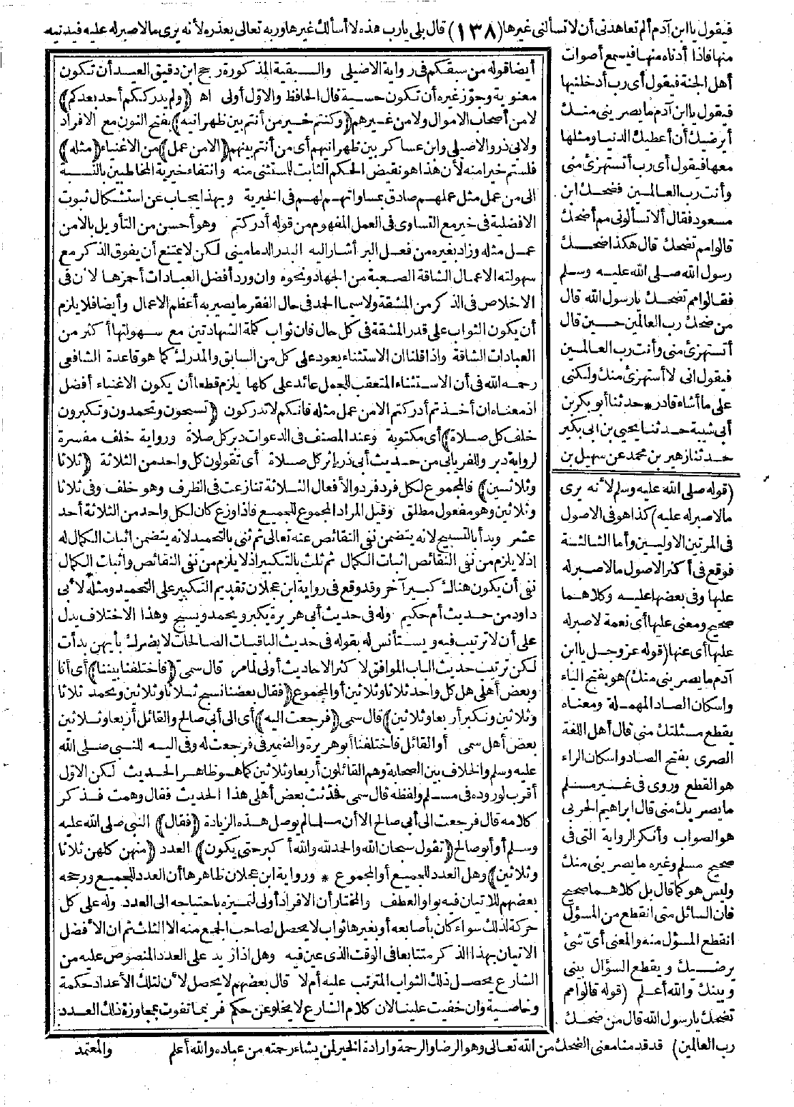 لأن هذا هو نقيض الحكم الثابت للمستثنى منه، وانتقاء خيرية المخاطبين بالنسبة إلى من عمر مثل عملهم صادق بمساواتهم لهم في الخيرية، وبها يجُاب عن استشكال ثبوت الأفضلية في خير مع التساوي في العمل الفهوم من قوله: أدركتم، وهو أحسن من التأويل: بإلا مَن عمل مثله. وزاد: بغيره من فعل البر، أشار إليه البدر الدماميني، لكن لا يمتنع أن يفوق الذكر مع سهولته الأعمال الشاقّة الصعبة من الجهاد، ونحوه، وإن ورد: أفضل العبادات أحمزها، لأن في الإخلاص في الذكر من المشقّة، ولا سيما الحمد في حال الفقر، ما يصير به أعظم الأعمال. وأيضًا فلا يلزم أن يكون الثواب على قدر المشقّة، في كل حال، فإن ثواب كلمة الشهادتين مع سهولتها، أكثر من العبادات الشاقة.