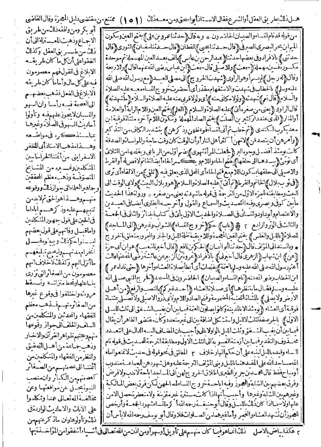 863 - حَدَّثَنَا عَمْرُو بْنُ عَلِيٍّ قَالَ: حَدَّثَنَا يَحْيَى قَالَ: حَدَّثَنَا سُفْيَانُ حَدَّثَنِي عَبْدُ الرَّحْمَنِ بْنُ عَابِسٍ سَمِعْتُ ابْنَ عَبَّاسٍ -رضي الله عنهما- قَالَ رَجُلٌ: شَهِدْتَ الْخُرُوجَ مَعَ رَسُولِ اللَّهِ -صَلَّى اللَّهُ عَلَيْهِ وَسَلَّمَ-؟ قَالَ: نَعَمْ، وَلَوْلاَ مَكَانِي مِنْهُ مَا شَهِدْتُهُ -يَعْنِي مِنْ صِغَرِهِ- أَتَى الْعَلَمَ الَّذِي عِنْدَ دَارِ كَثِيرِ بْنِ الصَّلْتِ، ثُمَّ خَطَبَ، ثُمَّ أَتَى النِّسَاءَ فَوَعَظَهُنَّ وَذَكَّرَهُنَّ وَأَمَرَهُنَّ أَنْ يَتَصَدَّقْنَ، فَجَعَلَتِ الْمَرْأَةُ تُهْوِي بِيَدِهَا إِلَى حَلْقِهَا تُلْقِي فِي ثَوْبِ بِلاَلٍ، ثُمَّ أَتَى هُوَ وَبِلاَلٌ الْبَيْتَ".