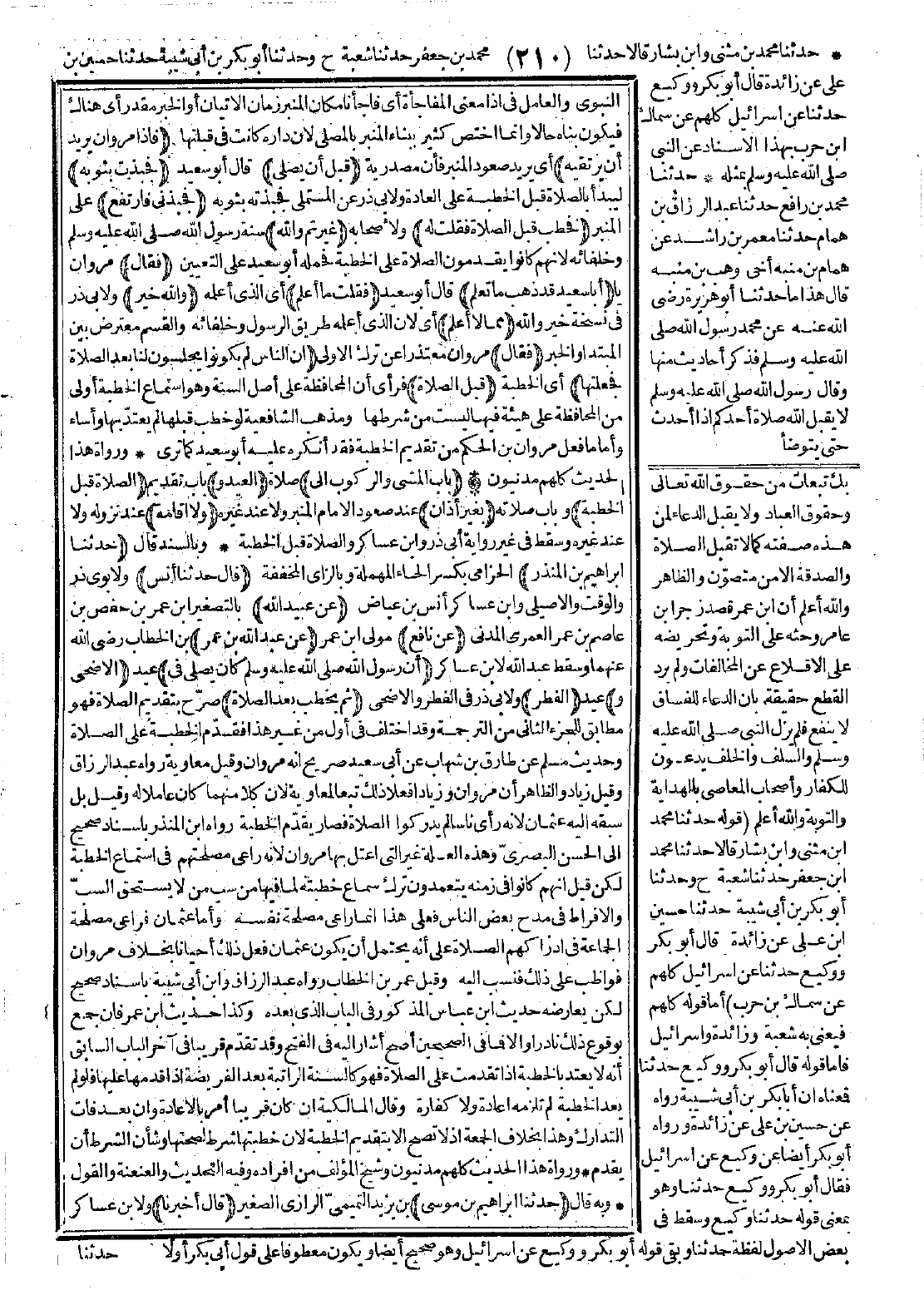 957 - حَدَّثَنَا إِبْرَاهِيمُ بْنُ الْمُنْذِرِ قَالَ: حَدَّثَنَا أَنَسٌ عَنْ عُبَيْدِ اللَّهِ عَنْ نَافِعٍ عَنْ عَبْدِ اللَّهِ بْنِ عُمْرَانَ "أَنَّ رَسُولَ اللَّهِ -صَلَّى اللَّهُ عَلَيْهِ وَسَلَّمَ- كَانَ يُصَلِّي فِي الأَضْحَى وَالْفِطْرِ، ثُمَّ يَخْطُبُ بَعْدَ الصَّلاَةِ". [الحديث 957 - طرفه في: 963].