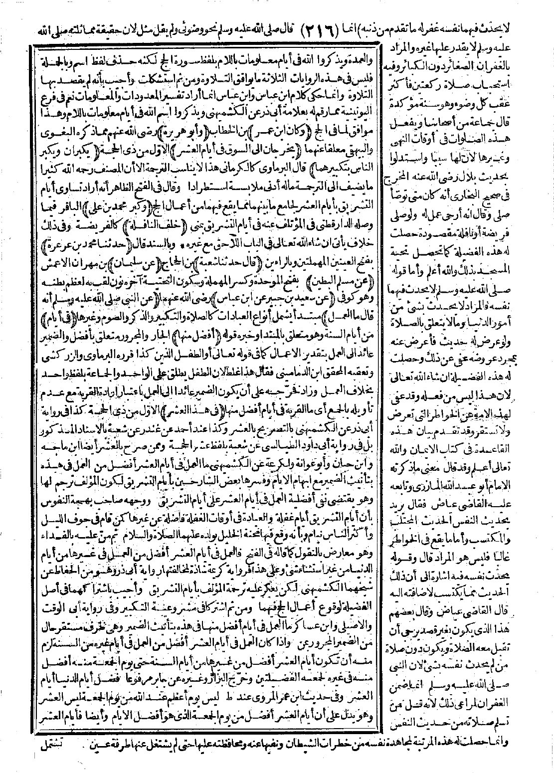 وقال في الفتح: الظاهر أنه أراد تساوي أيام التشريق بأيام العشر، لجامع ما بينهما مما يقع فيهما من أعمال الحج.