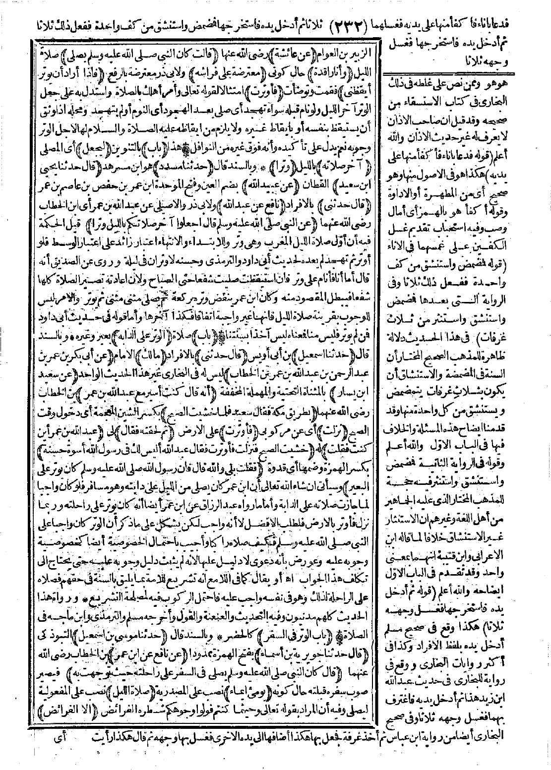 999 - حَدَّثَنَا إِسْمَاعِيلُ قَالَ: حَدَّثَنِي مَالِكٌ عَنْ أَبِي بَكْرِ بْنِ عُمَرَ بْنِ عَبْدِ الرَّحْمَنِ بْنِ عَبْدِ اللَّهِ بْنِ عُمَرَ بْنِ الْخَطَّابِ عَنْ سَعِيدِ بْنِ يَسَارٍ أَنَّهُ قَالَ: "كُنْتُ أَسِيرُ مَعَ عَبْدِ اللَّهِ بْنِ عُمَرَ بِطَرِيقِ مَكَّةَ، فَقَالَ سَعِيدٌ: فَلَمَّا خَشِيتُ الصُّبْحَ نَزَلْتُ فَأَوْتَرْتُ ثُمَّ لَحِقْتُهُ، فَقَالَ عَبْدُ اللَّهِ بْنُ عُمَرَ: أَيْنَ كُنْتَ؟ فَقُلْتُ: خَشِيتُ الصُّبْحَ فَنَزَلْتُ فَأَوْتَرْتُ. فَقَالَ عَبْدُ اللَّهِ: أَلَيْسَ لَكَ فِي رَسُولِ اللَّهِ -صَلَّى اللَّهُ عَلَيْهِ وَسَلَّمَ- أُسْوَةٌ حَسَنَةٌ؟ فَقُلْتُ: بَلَى وَاللَّهِ. قَالَ: فَإِنَّ رَسُولَ اللَّهِ -صَلَّى اللَّهُ عَلَيْهِ وَسَلَّمَ- كَانَ يُوتِرُ عَلَى الْبَعِيرِ". [الحديث 999 - أطرافه في: 1000، 1095، 1096، 1098، 1105].