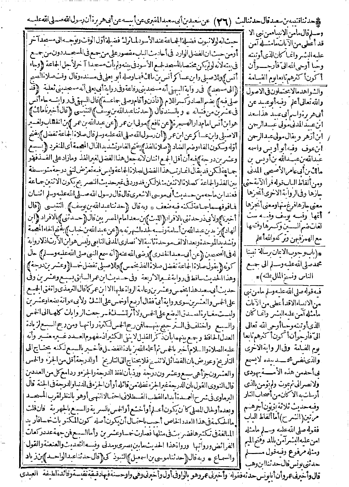 وهذا الحديث ساقط في رواية غير الأربعة، وفي حديث ابن عمر السابق: بسبع وعشرين، وفي حديث أبي سعيد هذا: بخمس وعشرين، وعامّة الرواة عليها إلا ابن عمر كما قال الترمذي، واتفق الجميع على الخمس والعشرين سوى رواية أُبيّ فقال: أربع أو خمس على الشك، ولأبي عوانة بضعًا وعشرين وليست مغايرة لصدق البضع على الخمس ولا أثر للشك فرجعت الروايات كلها إلى الخمس والسبع واختلف في الترجيح بينهما، فمن رجح الخمس لكثرة رواتها، ومن رجح السبع لزيادة العدل، الحافظ، وجمع بينهما بأن ذكر القليل لا ينفي الكثير، إذ مفهوم العدد غير معتبر، وأنه عليه الصلاة والسلام أخبر بالخمس، ثم أعلمه الله بزيادة الفضل فأخبر بالسبع، لكنه يحتاج إلى التاريخ.