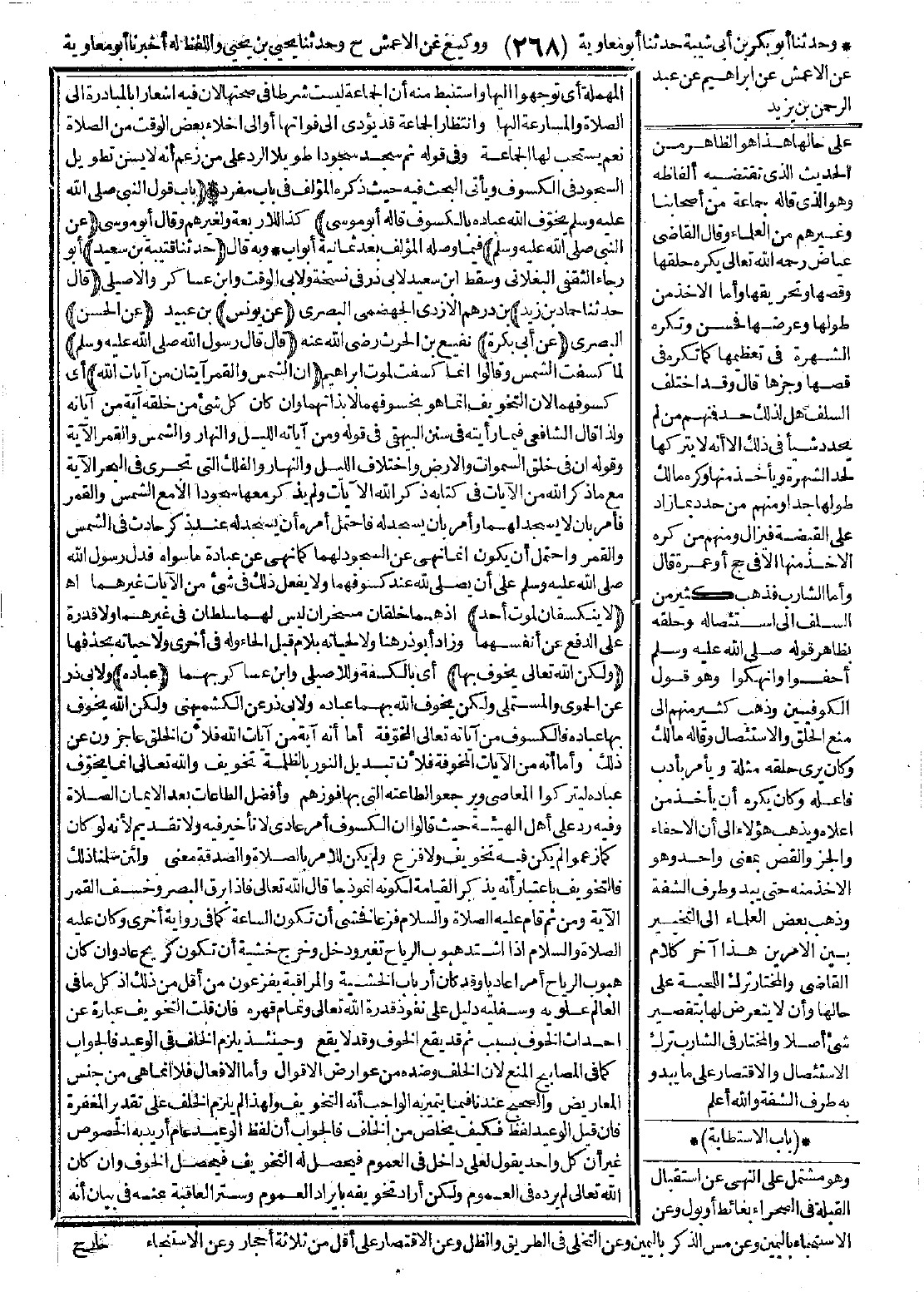 وفيه رد على أهل الهيئة حيث قالوا: إن الكسوف أمر عادي لا تأخير فيه ولا تقديم. لأنه لو كان كما زعموا لم يكن فيه تخويف ولا فزع، ولم يكن للأمر بالصلاة والصدقة معنى: