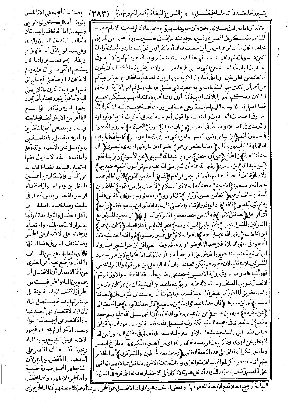 1071 - حَدَّثَنَا مُسَدَّدٌ قَالَ: حَدَّثَنَا عَبْدُ الْوَارِثِ قَالَ: حَدَّثَنَا أَيُّوبُ عَنْ عِكْرِمَةَ عَنِ ابْنِ عَبَّاسٍ - رضي الله عنهما "أَنَّ النَّبِيَّ -صَلَّى اللَّهُ عَلَيْهِ وَسَلَّمَ- سَجَدَ بِالنَّجْمِ، وَسَجَدَ مَعَهُ الْمُسْلِمُونَ وَالْمُشْرِكُونَ، وَالْجِنُّ وَالإِنْسُ".