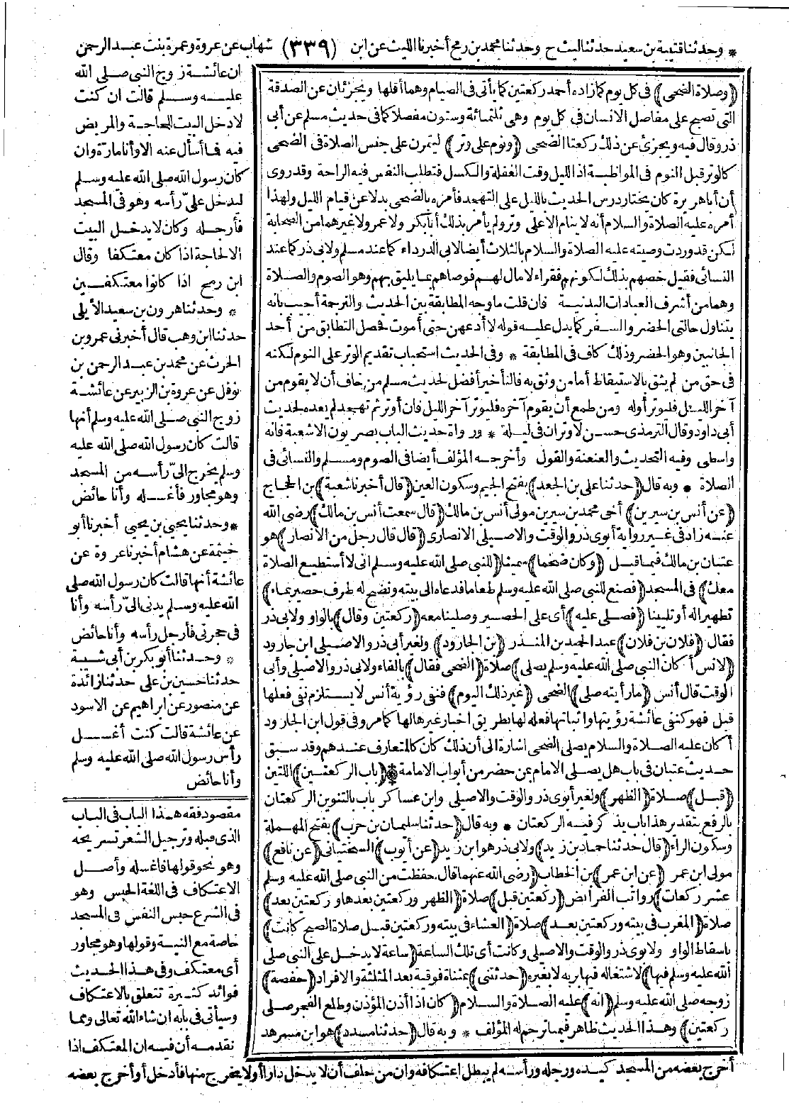 وقد روي أن أبا هريرة كان يختار درس الحديث بالليل على التهجد، فأمره بالضحى بدلاً عن قيام الليل، ولهذا أمره عليه الصلاة والسلام أنه: لا ينام إلا على وتر، ولم يأمر بذلك أبا بكر، ولا عمر، ولا غيرهما من الصحابة.