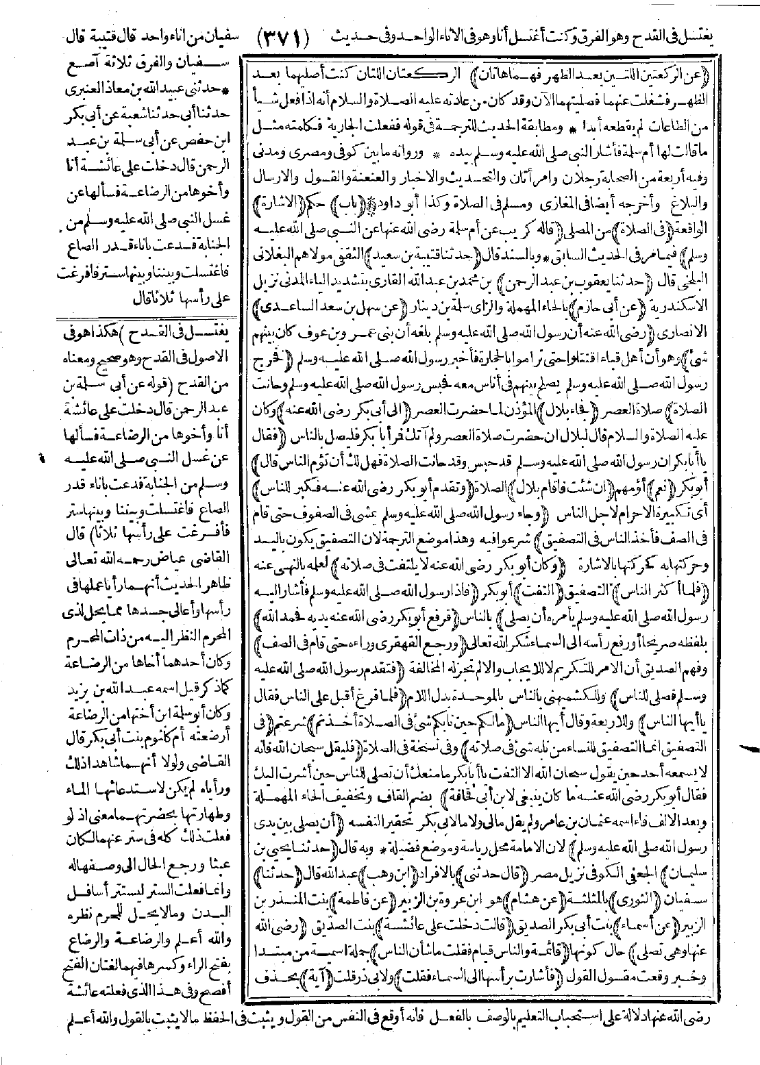 ورواته ما بين: كوفي ومصري ومدني وفيه أربعة من الصحابة رجلان وامرأتان، والتحديث والإخبار، والعنعنة والقول، والإرسال والبلاغ، وأخرجه أيضًا في: المغازي، ومسلم في الصلاة، وكذا أبو داود.