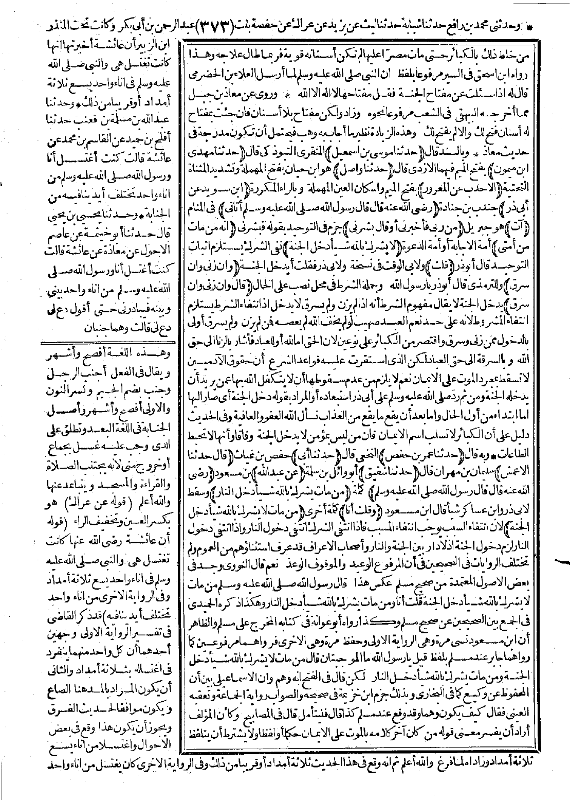 وهكذا ذكره الحميدي في الجمع بين الصحيحين، عن صحيح مسلم، وكذا رواه أبو عوانة في كتابه المخرج على مسلم، والظاهر أن ابن مسعود نسي مرة، وهي الرواية الأولى، وحفظ مرة وهى الأخرى فرواهما مرفوعين، كما رواهما جابر عند مسلم بلفظ: قيل يا رسول الله، ما الموجبتان؟