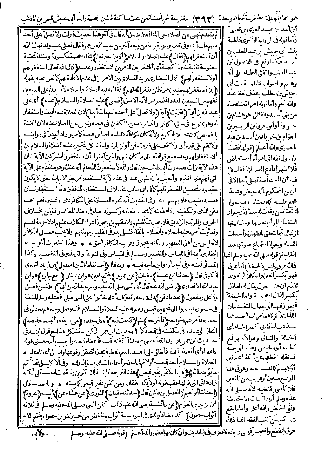 (أنا بين خيرتين) بخاء معجمة مكسورة ومثناة تحتية مفتوحة تثنية خيرة كعنبة أي أنا مخير بين الأمرين الاستغفار وعدمه (قال الله تعالى: {اسْتَغْفِرْ لَهُمْ أَوْ لَا تَسْتَغْفِرْ لَهُمْ}) قال البيضاوي: يريد التساوي بين الأمرين في عدم الإفادة لهم، كما نص عليه بقوله: {إِنْ تَسْتَغْفِرْ لَهُمْ سَبْعِينَ مَرَّةً فَلَنْ يَغْفِرَ اللَّهُ لَهُمْ} [التوبة: 80] فقال عليه الصلاة والسلام: لأزيدن على السبعين، ففهم من السبعين العدد المخصوص لأنه الأصل (فصلّى) عليه الصلاة والسلام (عليه) أي: على عبد الله بن أبي (فنزلت) آية: ({وَلَا تُصَلِّ عَلَى أَحَدٍ مِنْهُمْ مَاتَ أَبَدًا}) [التوبة: 84]. لأن الصلاة دعاء للميت واستغفار له. وهو ممنوع في حق الكافر، وإنما لم ينه عن التكفين في قميصه، ونهى عن الصلاة عليه لأن الضنة بالقميص كان مخلاًّ بالكرم، ولأنه كان مكافأة لإلباسه العباس قميصه، كما مر.