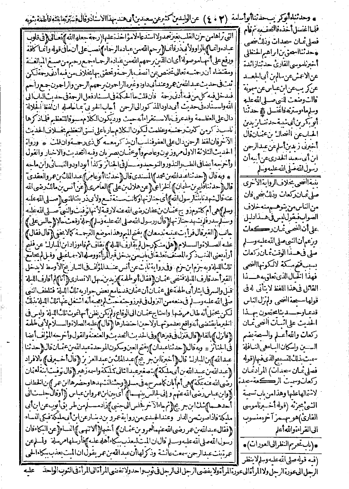 (فقال عبد الله بن عمر، رضي الله عنهما، لعمرو بن عثمان) أخيها: (ألا تنهى) النساء (عن البكاء؟ فإن رسول الله -صَلَّى اللَّهُ عَلَيْهِ وَسَلَّمَ- قال):