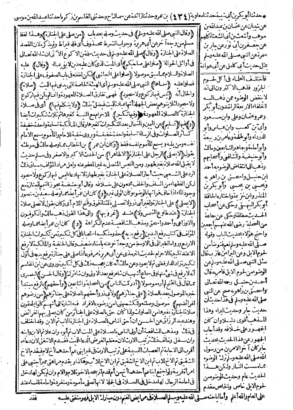 (وقال) -صَلَّى اللَّهُ عَلَيْهِ وَسَلَّمَ- في حديث سلمة بن الأكوع الآتي إن شاء الله تعالى في أوائل الحوالة (صلوا على صاحبكم) أي الميت الذي كان عليه دين لا يفي بماله. (وقال) عليه الصلاة والسلام، مما سبق موصولاً: (صلوا على النجاشي) لكن لفظه في باب الصفوف على الجنازة: فصلوا عليه (سماها) النبي -صَلَّى اللَّهُ عَلَيْهِ وَسَلَّمَ- أي: الهيئة الخاصة التي يدعى فيها للميت (صلاة) والحال أنه (ليس فيها ركوع ولا سجود) فهي تفارق الصلاة المعهودة، وإنما لم يكن فيها ركوع، ولا سجود لئلا يتوهم بعض الجهلة أنها عبادة للميت فيضل بذلك. (ولا يتكلم فيها) أي: في صلاة الجنازة، كالصلاة المعهودة (وفيها تكبير) للإحرام مع النية كغيرها، ثم ثلاث تكبيرات أيضًا (و) فيها (تسليم) عن اليمين والشمال بعد التكبيرات، كغيرها. وقال المالكية: تسليمة واحدة خفيفة كسائر الصلوات وفي الرسالة: تسليمة واحدة خفيفة، ويروى: خفية للإمام والمأموم، يسمع الإمام نفسه ومن يليه، ويسمع المأموم نفسه فقط.