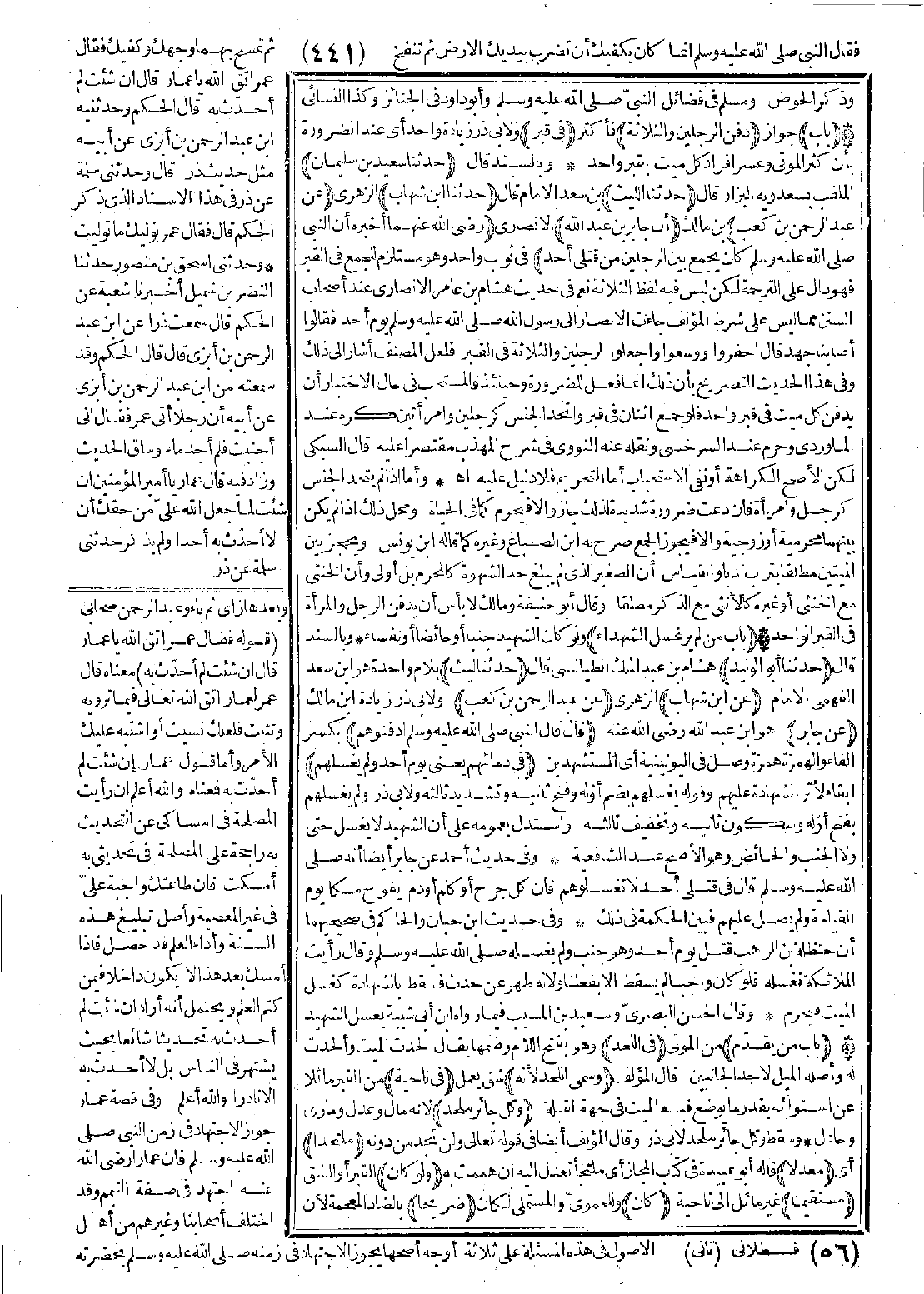 وبالسند قال: (حدّثنا أبو الوليد) هشام بن عبد الملك الطيالسي، قال: (حدّثنا ليث) بلام واحد، هو: ابن سعد الفهمي الإمام (عن ابن شهاب) الزهري (عن عبد الرحمن بن كعب) ولأبي ذر، زيادة: ابن مالك، (عن جابر) هو: ابن عبد الله، رضي الله عنه، (قال: قال النبي -صَلَّى اللَّهُ عَلَيْهِ وَسَلَّمَ-):