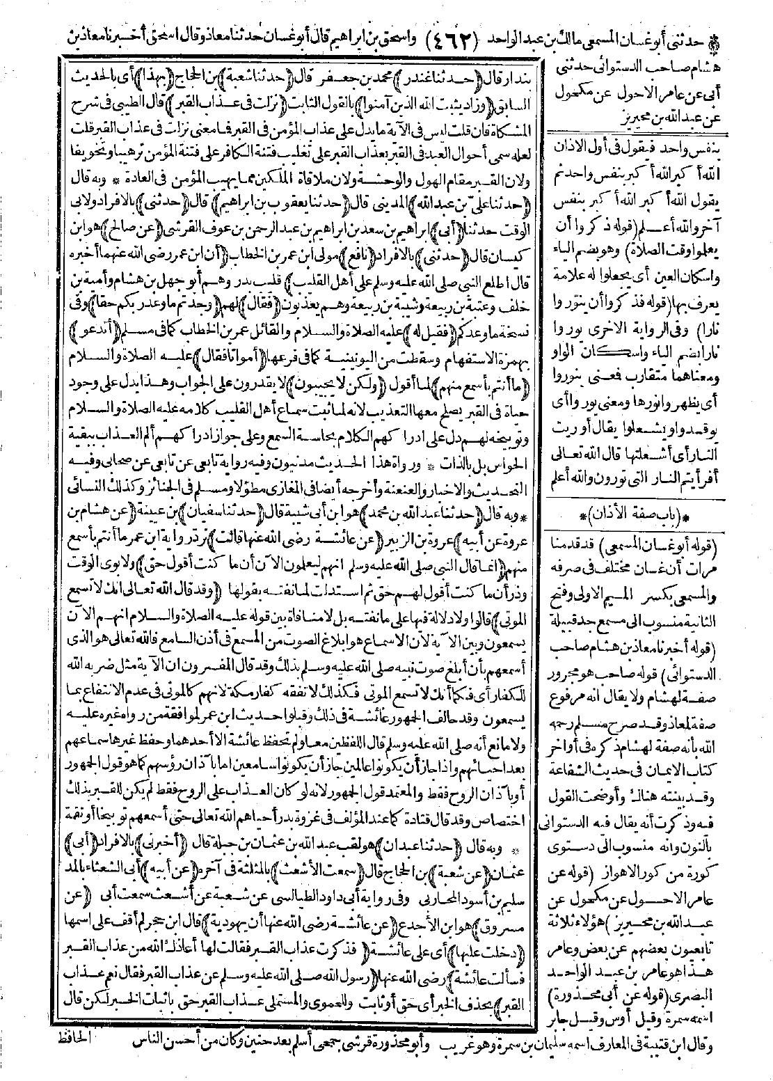 -رضي الله عنها- "أَنَّ يَهُودِيَّةً دَخَلَتْ عَلَيْهَا فَذَكَرَتْ عَذَابَ الْقَبْرِ فَقَالَتْ لَهَا: أَعَاذَكِ اللَّهُ مِنْ عَذَابِ الْقَبْرِ. فَسَأَلَتْ عَائِشَةُ رَسُولَ اللَّهِ -صَلَّى اللَّهُ عَلَيْهِ وَسَلَّمَ- عَنْ عَذَابِ الْقَبْرِ فَقَالَ: نَعَمْ، عَذَابُ الْقَبْرِ. قَالَتْ عَائِشَةُ -رضي الله عنها-: فَمَا رَأَيْتُ رَسُولَ اللَّهِ -صَلَّى اللَّهُ عَلَيْهِ وَسَلَّمَ- بَعْدُ صَلَّى صَلاَةً إِلاَّ تَعَوَّذَ مِنْ عَذَابِ الْقَبْرِ".