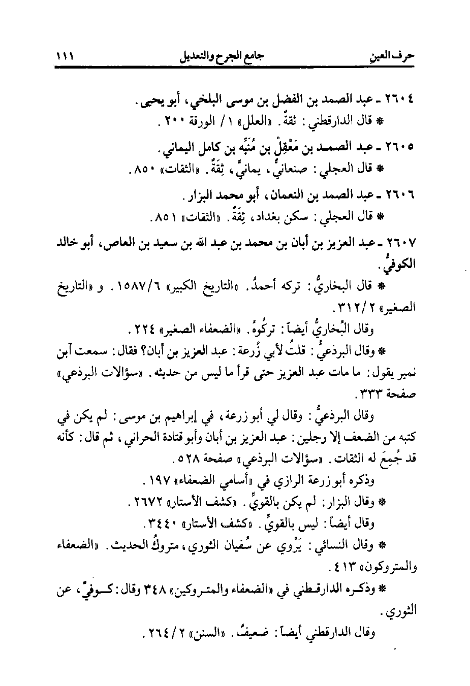 2607 - عبد العزيز بن أبان بن محمد بن عبد الله بن سيد بن العاص، أبو خالد الكوفيُّ.