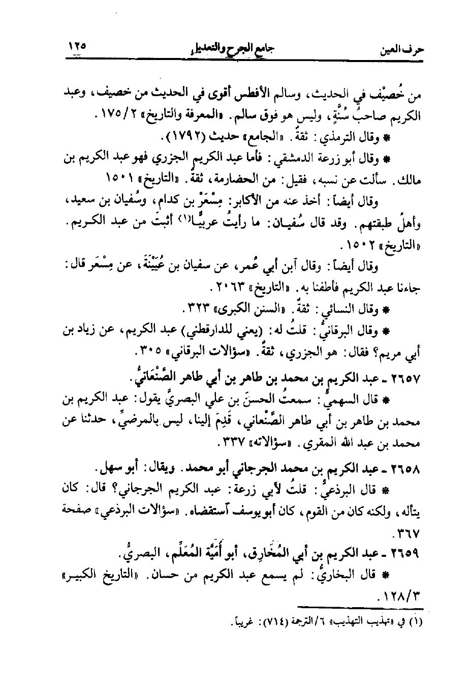 * وقال أبو زرعة الدمشقي: فأما عبد الكريم الجزري فهو عبد الكريم بن مالك. سألت عن نسبه، فقيل: من الحضارمة، ثقة. "التاريخ" 1501.