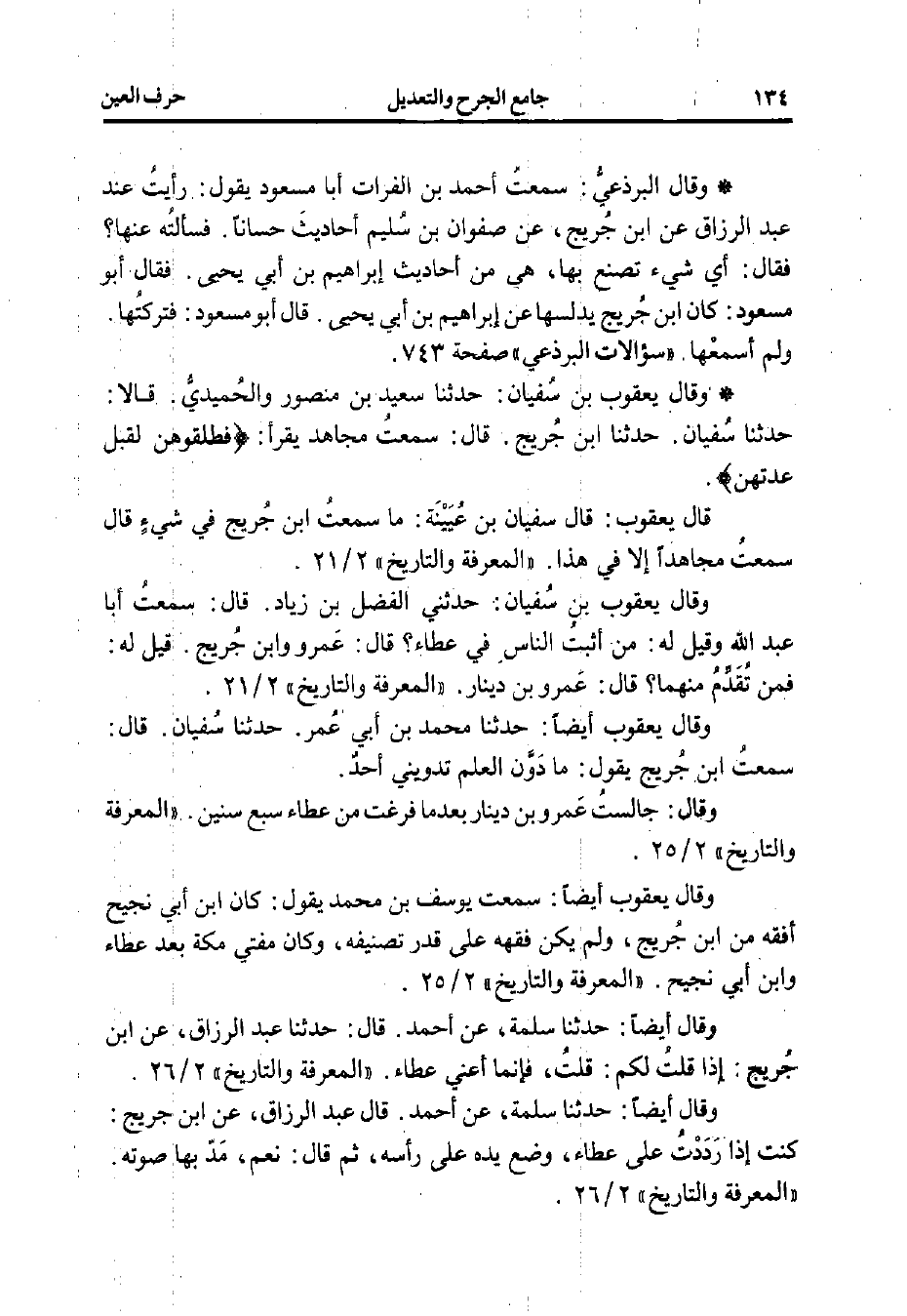 قال يعقوب: قال سفيان بن عُيَيْنَة: ما سمعتُ ابن جُريج في شيءٍ قال سمعتُ مجاهدًا إلا في هذا."المعرفة والتاريخ" 2/ 21.