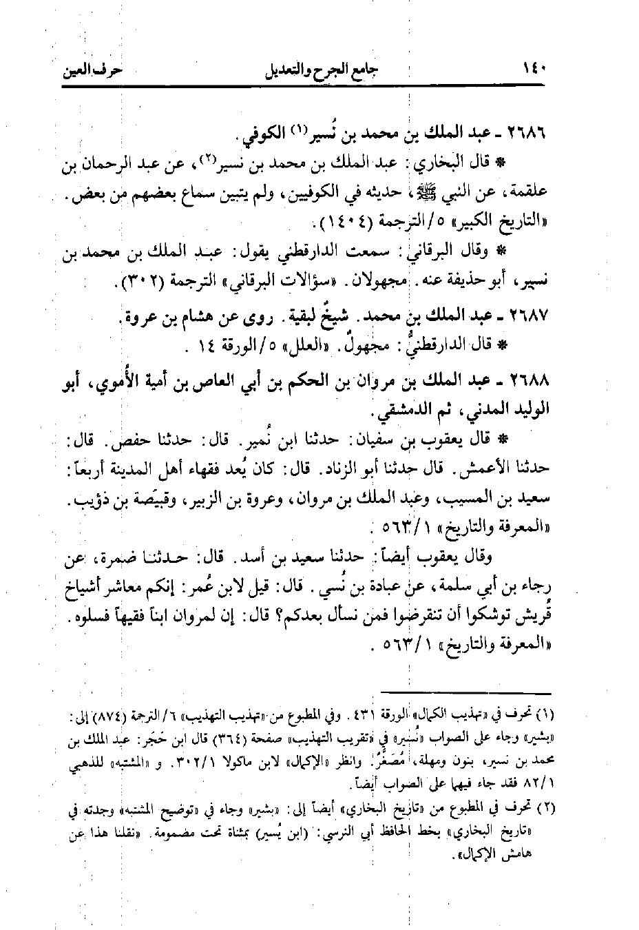 (¬1) تحرف في "تهذيب الكمال" الورقة 431. وفي المطبوع من "تهذيب التهذيب" 6/ الترجمة (874) إلى: "بشير" وجاء على الصواب "نُسير" في "تقريب التهذيب" صفحة (364) قال ابن حَجَر: عبد الملك بن محمد بن نسير، بنون ومهلة، مُصَغَّرٌ. وانظر "الإكمال" لابن ماكولا 1/ 302. و"المشتبه" للذهبي 1/ 82 فقد جاء فيهما على الصواب أيضًا.