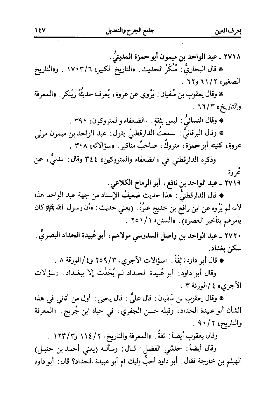 2720 - عبد الواحد بن واصل السدوسي مولاهم، أبو عُبيدة الحداد البصريُّ. سكن بغداد.