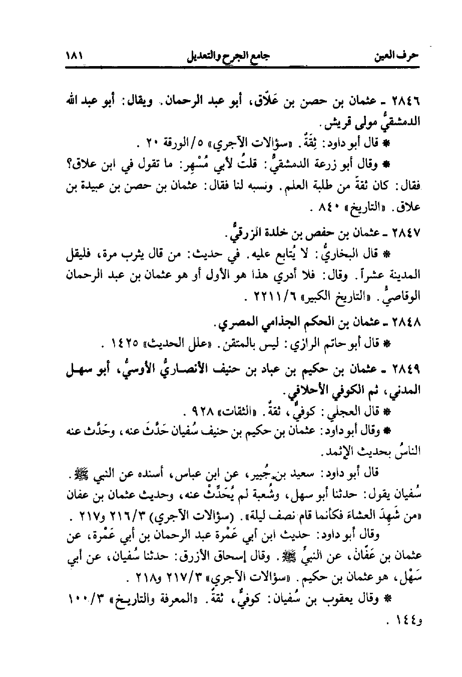 2846 - عثمان بن حصن بن عَلّاق، أبو عبد الرحمن. ويقال: أبو عبد الله الدمشقيُّ مولى قريش.