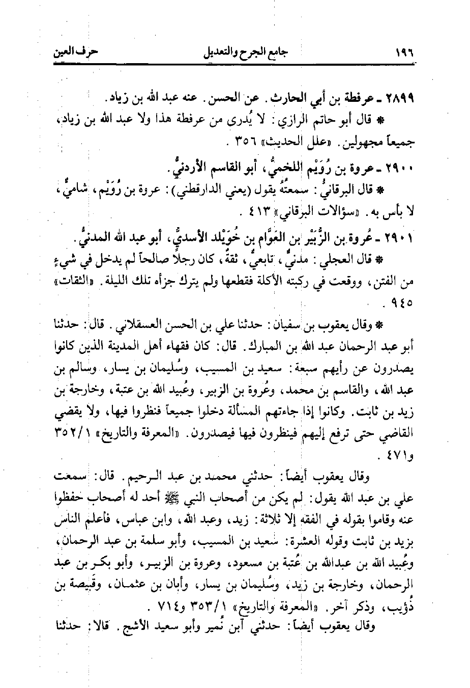 2901 - عُروة بن الزُّبَيْر بن العَوَّام بن خُوَيْلد الأسديُّ، أبو عبد الله المدنيُّ.