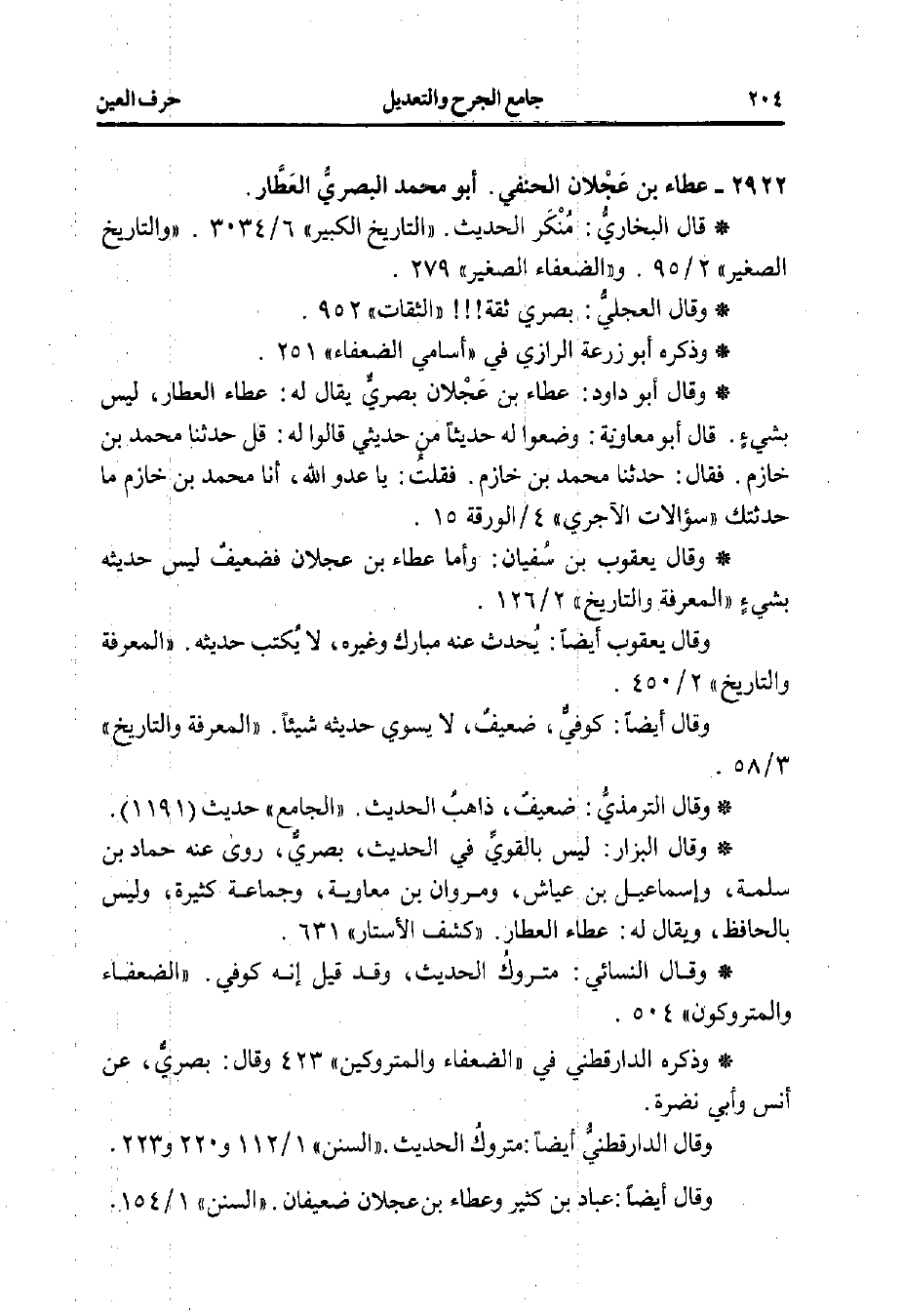 * وقال البزار: ليس بالقويِّ في الحديث، بصريٌّ، روى عنه حماد بن سلمة، وإسماعيل بن عياش، ومروان بن معاوية، وجماعة كثيرة، وليس بالحافظ، ويقال له: عطاء العطار. "كشف الأستار" 631.