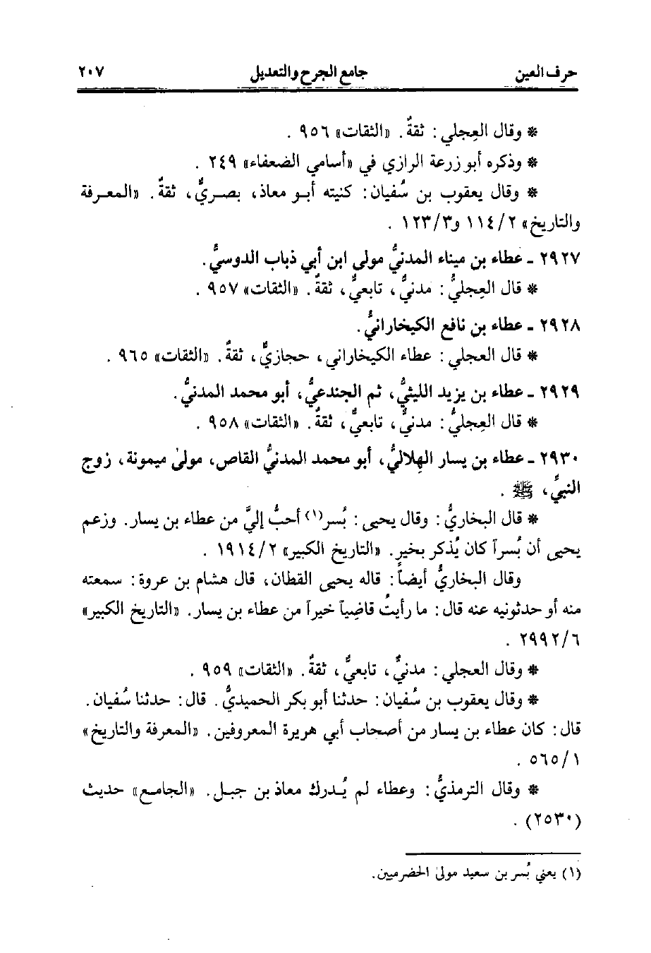 * قال البخاريُّ: وقال يحيى: بُسر (¬1) أحبُّ إليَّ من عطاء بن يسار. وزعم يحيى أن بُسرًا كان يُذكر بخيرٍ. "التاريخ الكبير" 2/ 1914.