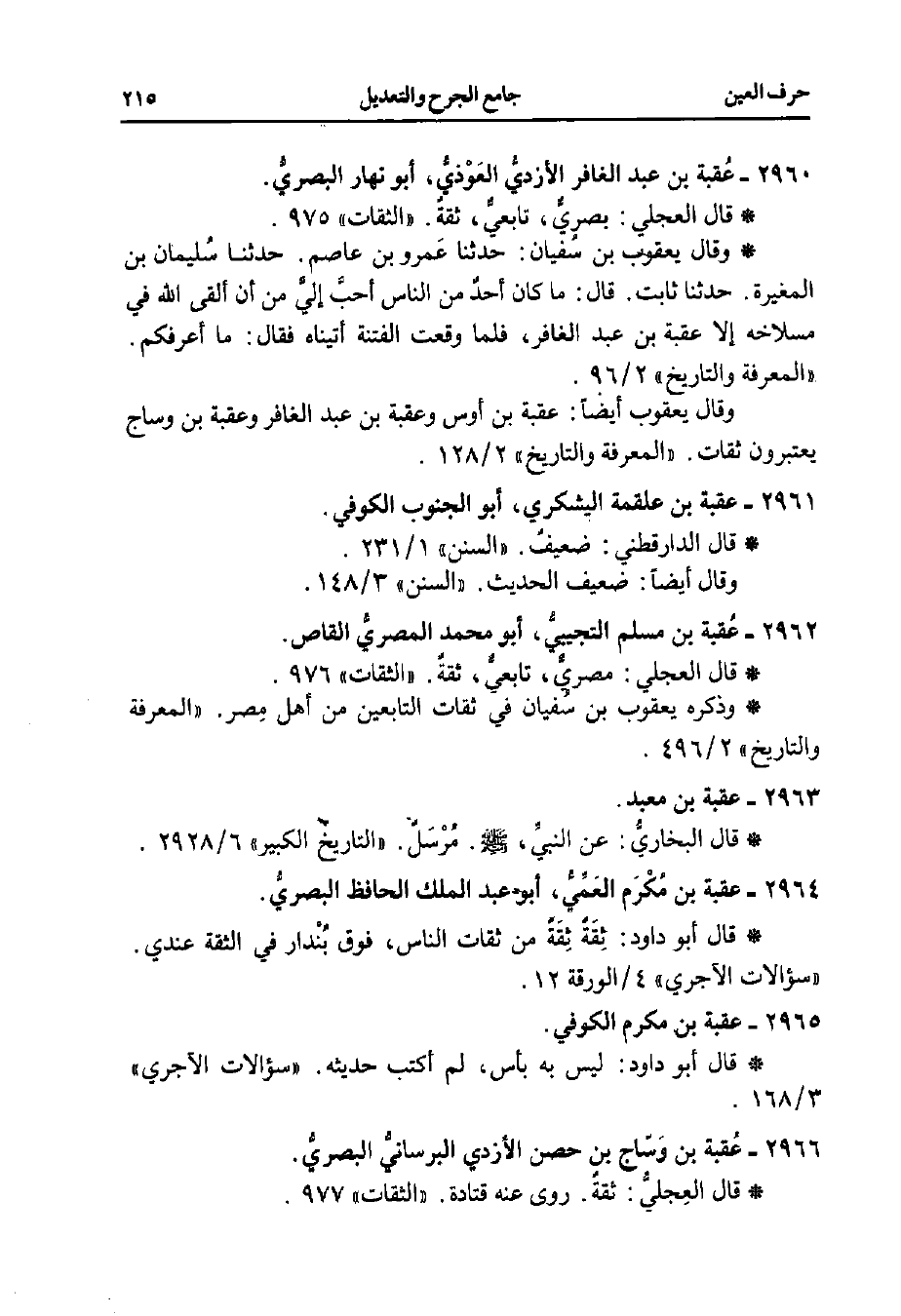 وقال يعقوب أيضًا: عقبة بن أوس وعقبة بن عبد الغافر وعقبة بن وساج يعتبرون ثقات. "المعرفة والتاريخ" 2/ 128.