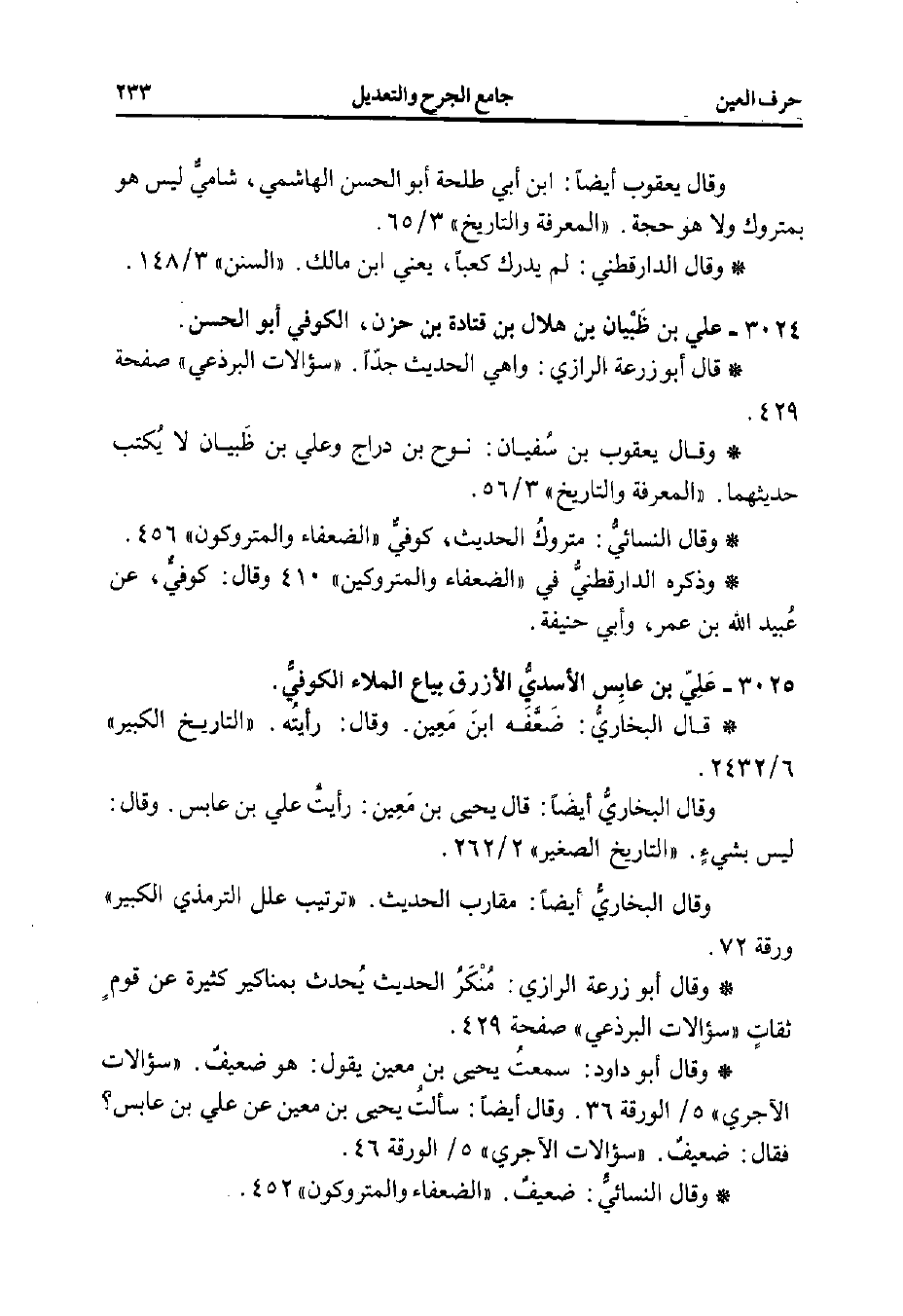 3025 - عَلِيّ بن عابِس الأسديُّ الأزرق بياع الملاء الكوفيُّ.