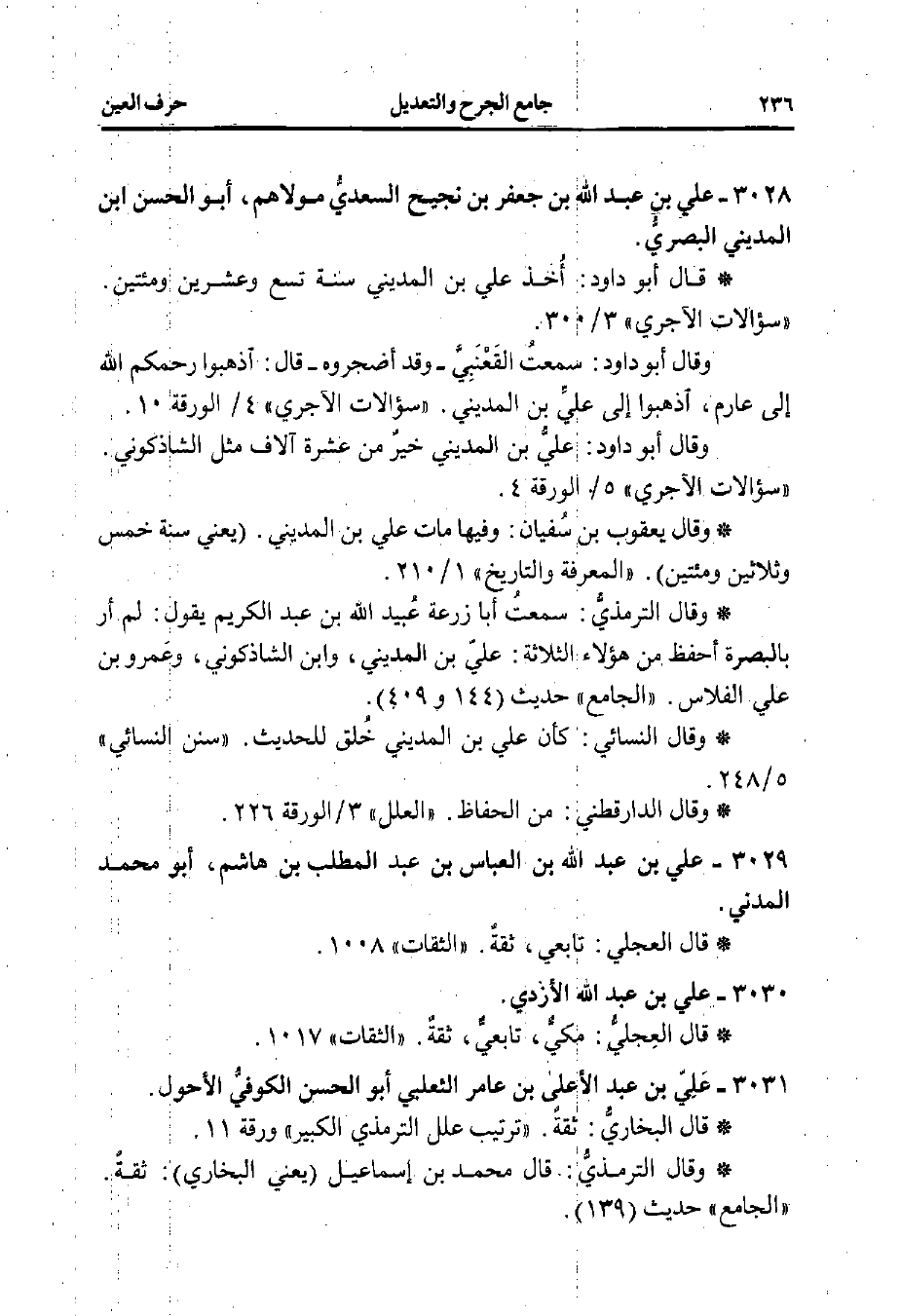 3028 - علي بن عبد الله بن جعفر بن نجيح السعديُّ مولاهم، أبو الحسن ابن المديني البصريُّ.