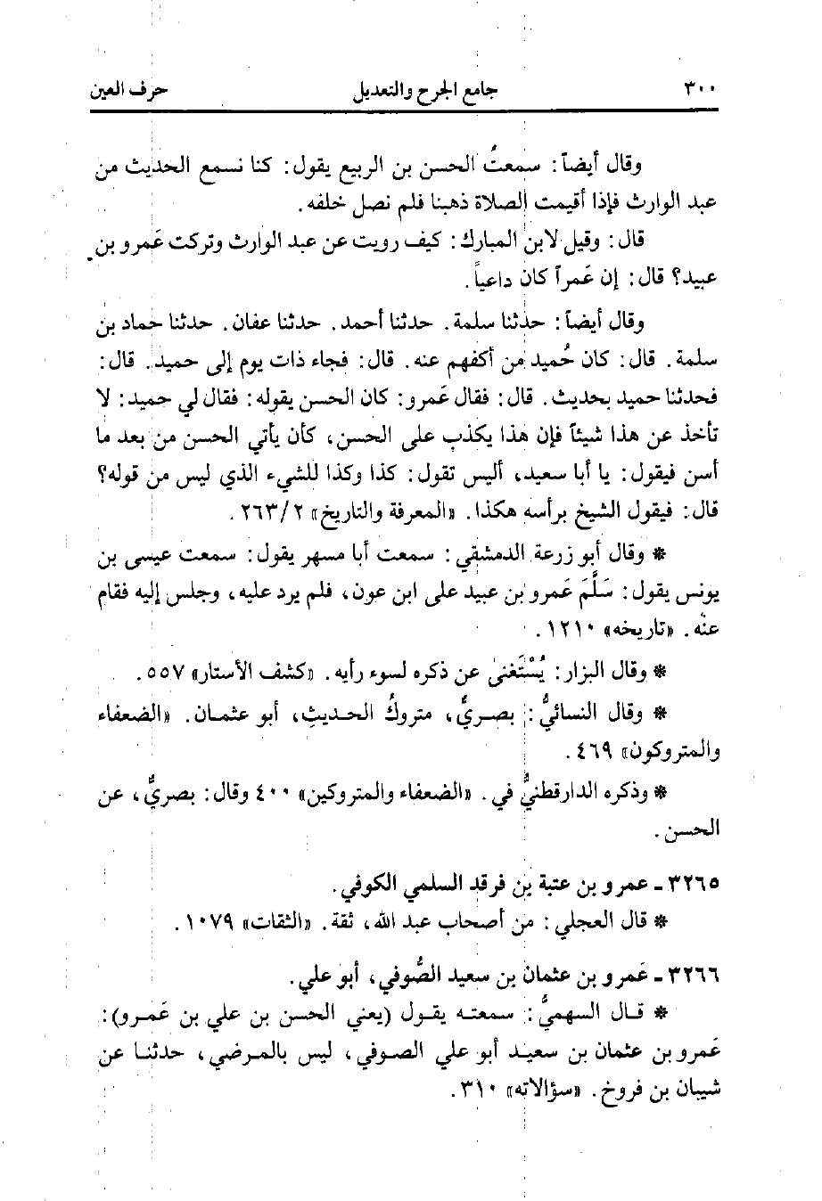 * قال السهميُّ: سمعته يقول (يعني الحسن بن علي بن عَمرو): عَمرو بن عثمان بن سعيد أبو علي الصوفي، ليس بالمرضي، حدثنا عن شيبان بن فروخ. "سؤالاته" 310.