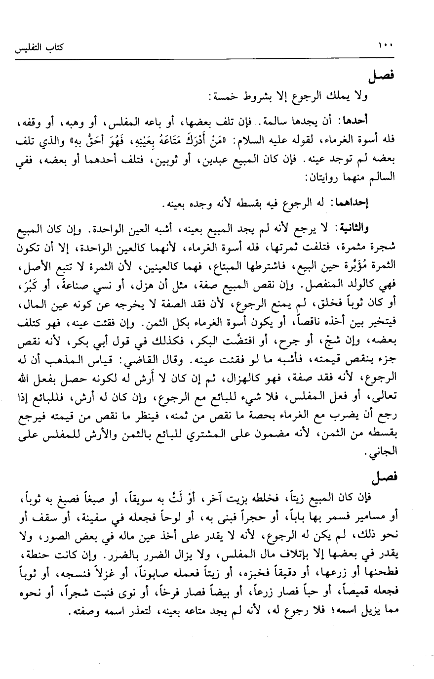 أحدها: أن يجدها سالمة. فإن تلف بعضها، أو باعه المفلس، أو وهبه، أو وقفه، فله أسوة الغرماء؛ لقوله - عَلَيْهِ السَّلَامُ -: «من أدرك متاعه بعينه فهو أحق به» والذي تلف بعضه لم توجد عينه. فإن كان المبيع عبدين، أو ثوبين، فتلف أحدهما أو بعضه، ففي السالم منهما روايتان: