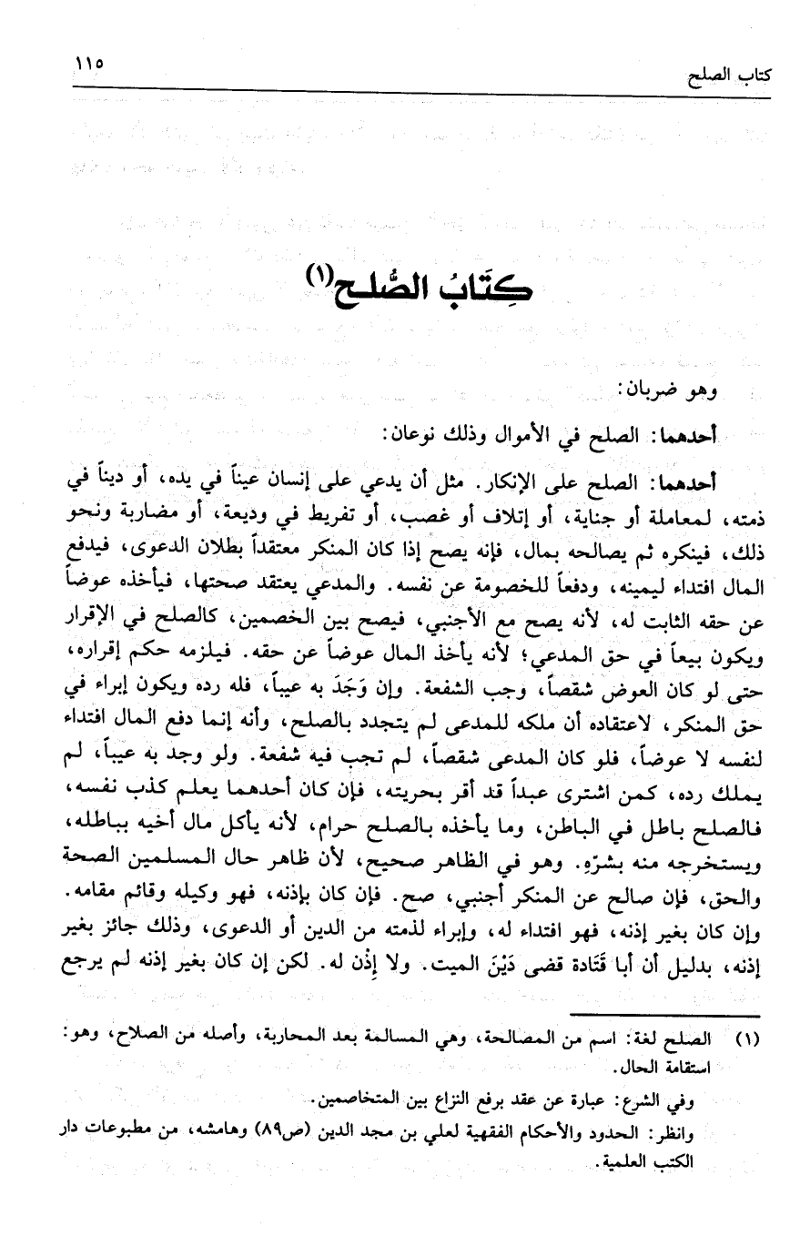أحدهما: الصلح في الأموال وذلك نوعان: