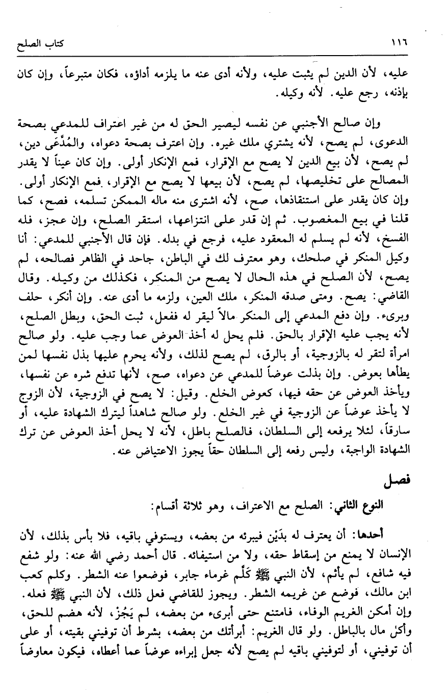 النوع الثاني: الصلح مع الاعتراف، وهو ثلاثة أقسام: