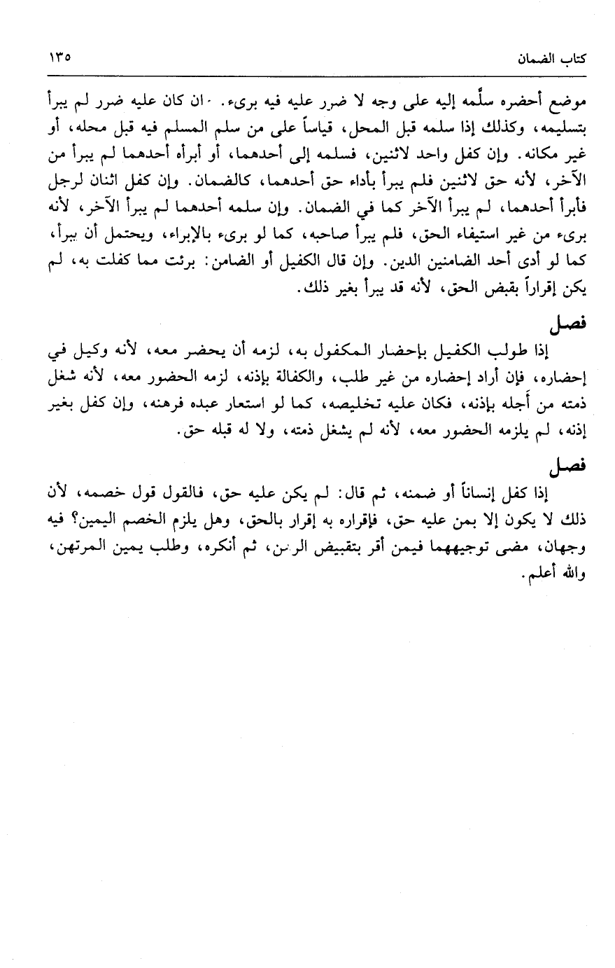 إن كان عليه ضرر لم يبرأ بتسليمه، وكذلك إذا سلمه قبل المحل، قياساً على من سلم المسلم فيه قبل محله، أو غير مكانه، وإن كفل واحد لاثنين، فسلمه إلى أحدهما، أو أبرأه أحدهما لم يبرأ من الآخر؛ لأنه حق لاثنين فلم يبرأ بأداء حق أحدهما، كالضمان، وإن كفل اثنان لرجل فأبرأ أحدهما، لم يبرأ الآخر كما في الضمان، وإن سلمه أحدهما لم يبرأ الآخر؛ لأنه برئ من غير استيفاء الحق، فلم يبرأ صاحبه، كما لو برئ بالإبراء، ويحتمل أن يبرأ، كما لو أدى أحد الضامنين الدين، وإن قال الكفيل أو الضامن: برئت مما كفلت به، لم يكن إقراراً بقبض الحق؛ لأنه قد يبرأ بغير ذلك.