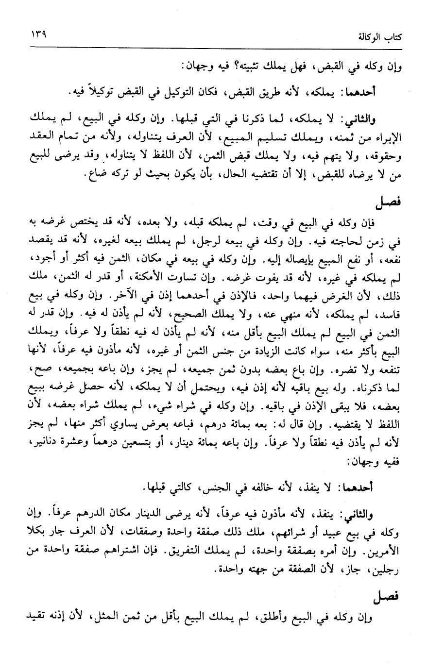 فإن وكله في البيع في وقت، لم يملكه قبله، ولا بعده؛ لأنه قد يختص غرضه به في زمن لحاجته فيه، وإن وكله في بيعه لرجل، ولم يملك بيعه لغيره؛ لأنه قد يقصد نفعه، أو نفع المبيع بإيصاله إليه، وإن وكله في بيعه في مكان، الثمن فيه أكثر وأجود، لم يملكه في غيره؛ لأنه قد يفوت غرضه، وإن تساوت الأمكنة، أو قدر له ثمن، ملك ذلك؛ لأن الغرض فيهما واحد، فالإذن في أحدهما إذن في الآخر، وإن وكله في بيع فاسد، لم يملكه؛ لأنه منهي عنه، ولا يملك الصحيح؛ لأنه لم يأذن له فيه، وإن قدر له الثمن في البيع لم يملك البيع بأقل منه؛ لأنه لا يأذن له فيه نطقاً ولا عرفاً، ويملك البيع بأكثر منه، وسواء كانت الزيادة من جنس الثمن أو غيره؛ لأنه مأذون فيه عرفاً؛ لأنها تنفعه ولا تضره، وإن باع بعضه بدون ثمن جميعه، لم يجز، وإن باعه بجميعه، صح، لما ذكرناه، وله بيع باقيه؛ لأنه إذن فيه، ويحتمل أن لا يملكه؛ لأنه حصل غرضه ببيع بعضه، فلا يبقى الإذن في باقيه، وإن وكله في شراء شيء، لم يملك شراء بعضه؛ لأن اللفظ لا يقتضيه، وإن قال له: بعه بمائة درهم، فباعه بعرض يساوي أكثر منها، لم يجز؛ لأنه لم يأذن فيه نطقاً ولا عرفاً، وإن باعه بمائة دينار، أو بتسعين درهماً وعشرة دنانير، ففيه وجهان: أحدهما: لا ينفذ؛ لأنه خالفه في الجنس، كالتي قبلها.