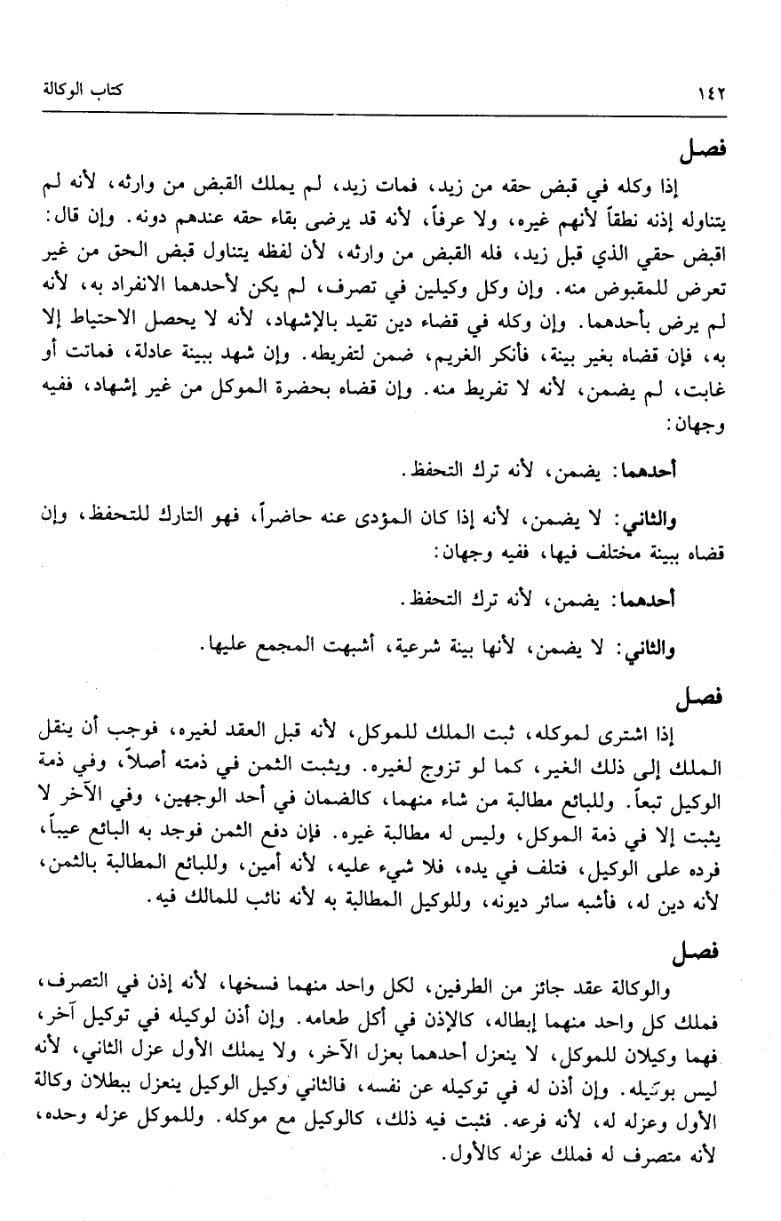 إذا وكله في قبض حقه من زيد، فمات زيد، لم يملك القبض من وارثه؛ لأنه لم يتناوله إذنه نطقاً؛ لأنهم غيره، ولا عرفاً؛ لأنه قد يرضى بقاء حقه عندهم دونه، وإن قال: اقبض حقي الذي قبل زيد، فله القبض من وارثه؛ لأن لفظه يتناول قبض الحق من غير تعرض للمقبوض منه، وإن وكل وكيلين في تصرف، لم يكن لأحدهما الانفراد به؛ لأنه لم يرض بأحدهما، وإن وكله في قضاء دين تقيد بالإشهاد؛ لأنه لا يحصل الاحتياط إلا به، فإن قضاه بغير بينة، فأنكر الغريم، ضمن لتفريطه، وإن شهد ببينة عادلة، فماتت أو غابت، لم يضمن؛ لأنه لا تفريط منه، وإن قضاه بحضرة الموكل من غير إشهاد، ففيه وجهان: أحدهما: يضمن؛ لأنه ترك التحفظ.