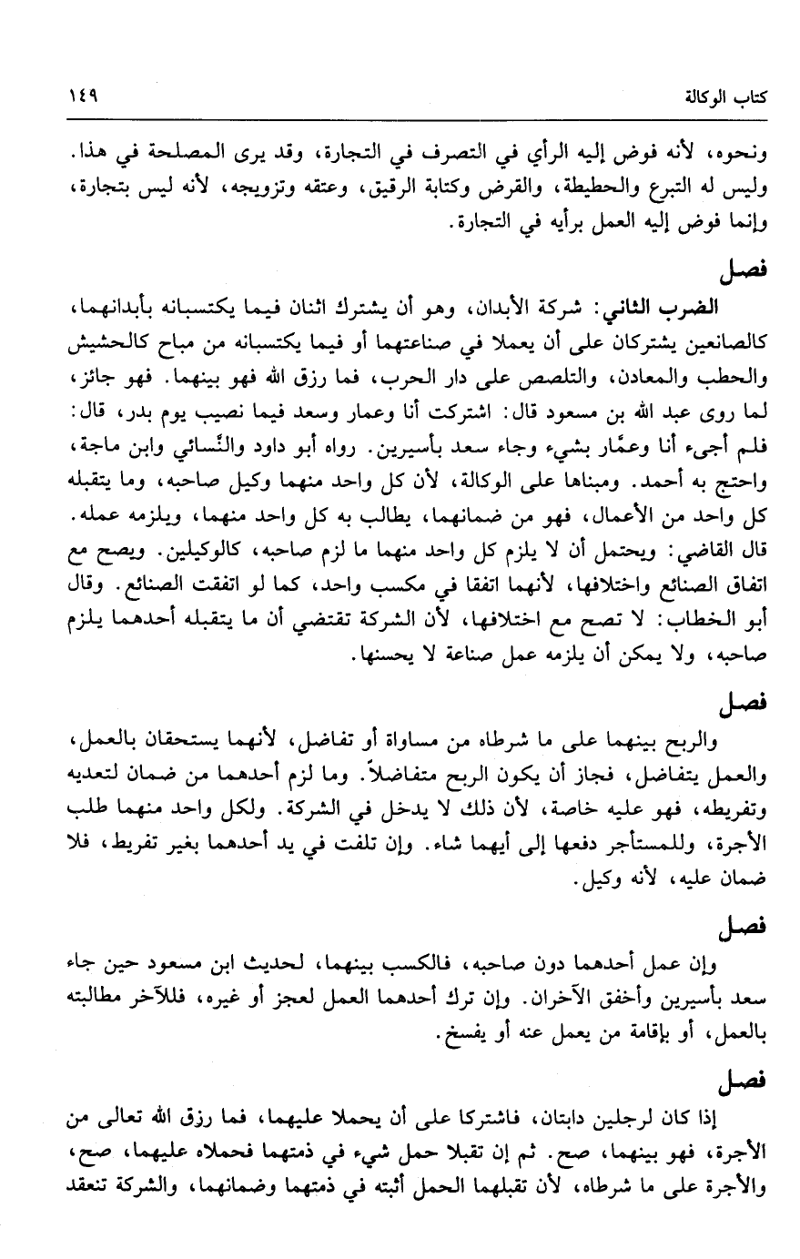 الضرب الثاني: شركة الأبدان، وهو أن يشترك اثنان فيما يكتسبانه بأبدانهما، كالصانعين يشتركان على أن يعملا في صناعتهما أو فيما يكتسبان من مباح كالحشيش والحطب والمعادن، والتلصص على دار الحرب، فما رزق الله فهو بينهما، فهو جائز، لما روى عبد الله بن مسعود قال: «اشتركت أنا وعمار وسعد فيما نصيب يوم بدر، قال: فلم أجئ أنا وعمار بشيء، وجاء سعد بأسيرين» .