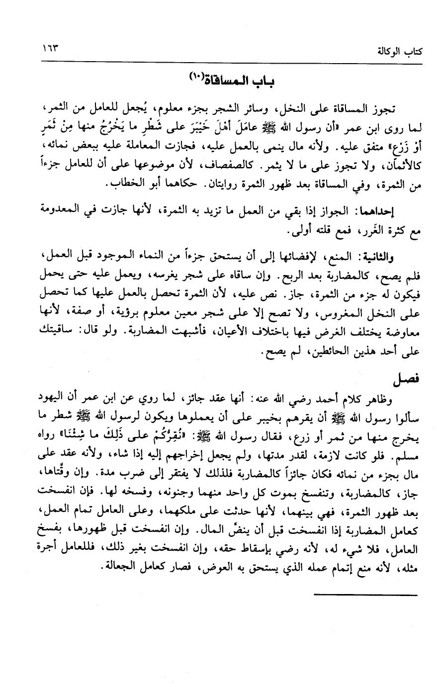 وظاهر كلام أحمد - رَضِيَ اللَّهُ عَنْهُ -: أنها عقد جائز، لما روي عن ابن عمر «أن اليهود سألوا رسول الله - صَلَّى اللَّهُ عَلَيْهِ وَسَلَّمَ -: أن يقرهم بخيبر على أن يعملوها ويكون لرسول الله - صَلَّى اللَّهُ عَلَيْهِ وَسَلَّمَ - شطر ما يخرج منها من ثمر أو زرع، فقال رسول الله - صَلَّى اللَّهُ عَلَيْهِ وَسَلَّمَ -: نقركم على ذلك ما شئنا» رواه مسلم.