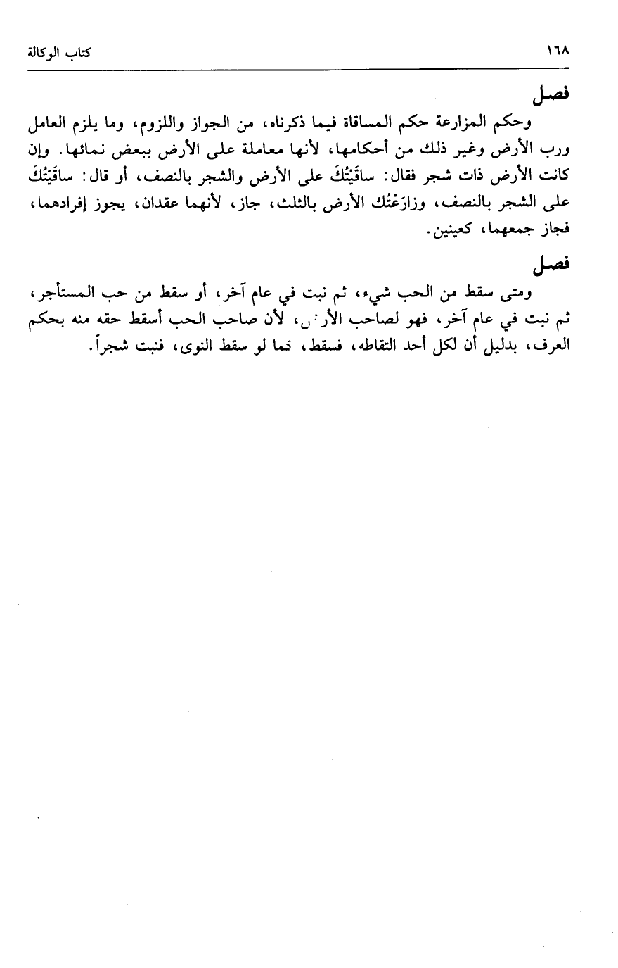 وحكم المزارعة حكم المساقاة فيما ذكرناه، ومن الجواز واللزوم، وما يلزم العامل ورب الأرض وغير ذلك من أحكامها؛ لأنها معاملة على الأرض ببعض نمائها، وإن كانت الأرض شجر فقال: ساقيتك على الأرض والشجر بالنصف، أو قال: ساقيتك على الشجر بالنصف، وزارعتك الأرض بالثلث، جاز؛ لأنهما عقدان يجوز إفرادهما، فجاز جمعهما، كعينين.