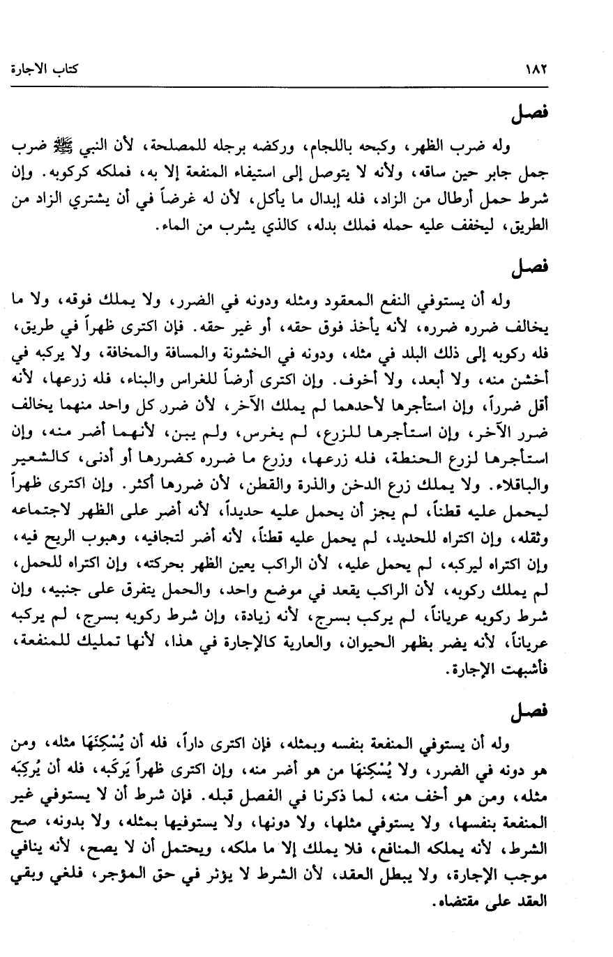 فإن اكترى ظهراً في طريق، فله ركوبه إلى ذلك البلد في مثله، ودونه في الخشونة، والمسافة والمخافة، ولا يركبه في أخشن منه، ولا أبعد، ولا أخوف، وإن اكترى أرضاً للغراس والبناء، فله زرعها؛ لأنه أقل ضرراً، وإن استأجرها لأحدهما لم يملك الآخر؛ لأن ضرر كل واحد منهما يخالف ضرر الآخر، وإن استأجرها للزرع لم يغرس، ولم يبين؛ لأنهما أضر منه، وإن استأجرها لزرع الحنطة، فله زرعها، وزرع ما ضرره كضررها أو أدنى، كالشعير، والبقلاء، ولا يملك زرع الدخن والذرة والقطن؛ لأن ضررها أكثر، وإن اكترى ظهراً ليحمل عليه قطناً، لم يجز أن يحمل عليه حديداً؛ لأنه أضر على الظهر لاجتماعه وثقله، وإن اكتراه للحديد، لم يحمل عليه قطناً؛ لأنه أضر لتجافيه، وهبوب الريح فيه، وإن اكتراه ليركبه، لم يحمل عليه؛ لأن الراكب يعين الظهر بحركته، وإن اكتراه للحمل، لم يملك ركوبه؛ لأن الراكب يقعد في موضع واحد، والحمل يتفرق على جنبيه، وإن شرط ركوبه عرياناً، لم يركب بسرج؛ لأنه زيادة، وإن شرط ركوبه بسرج، لم يركبه عرياناً؛ لأنه يضر بظهر الحيوان، والعارية كالإجارة في هذا؛ لأنها تمليك للمنفعة، فأشبهت الإجارة.