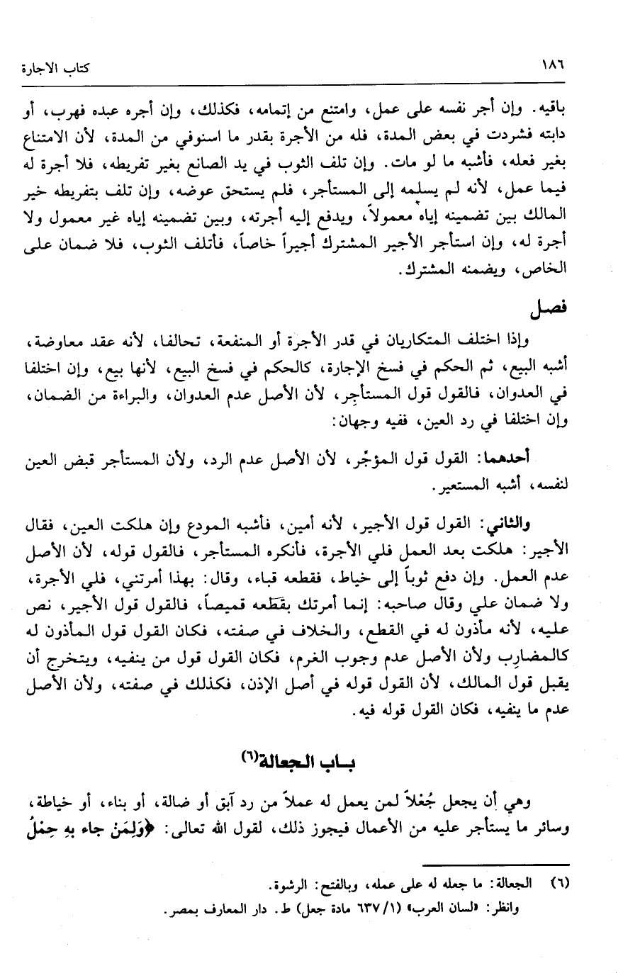 وهي أن يجعل جعلاً لمن يعمل له عملاً من رد آبق أو ضالة، أو بناء، أو خياطة، وسائر ما يستأجر عليه من الأعمال فيجوز ذلك؛ لقول الله تعالى: {وَلِمَنْ جَاءَ بِهِ حِمْلُ} [يوسف: 72]