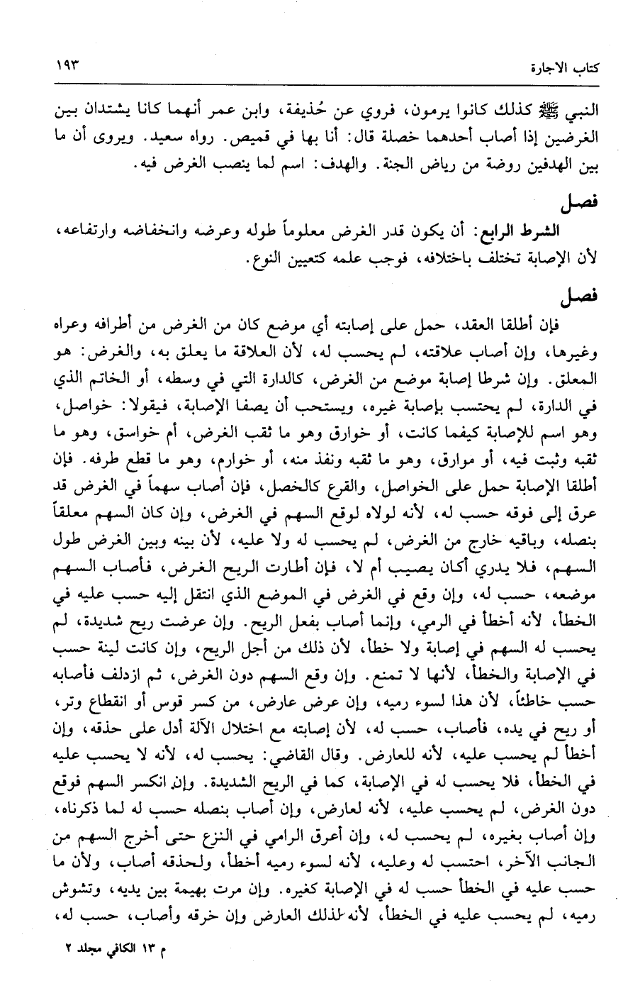 الشرط الرابع: أن يكون قدر الغرض معلومًا طوله وعرضه وانخفاضه وارتفاعه؛ لأن الإصابة تختلف باختلافه، فوجب علمه كتعيين النوع.