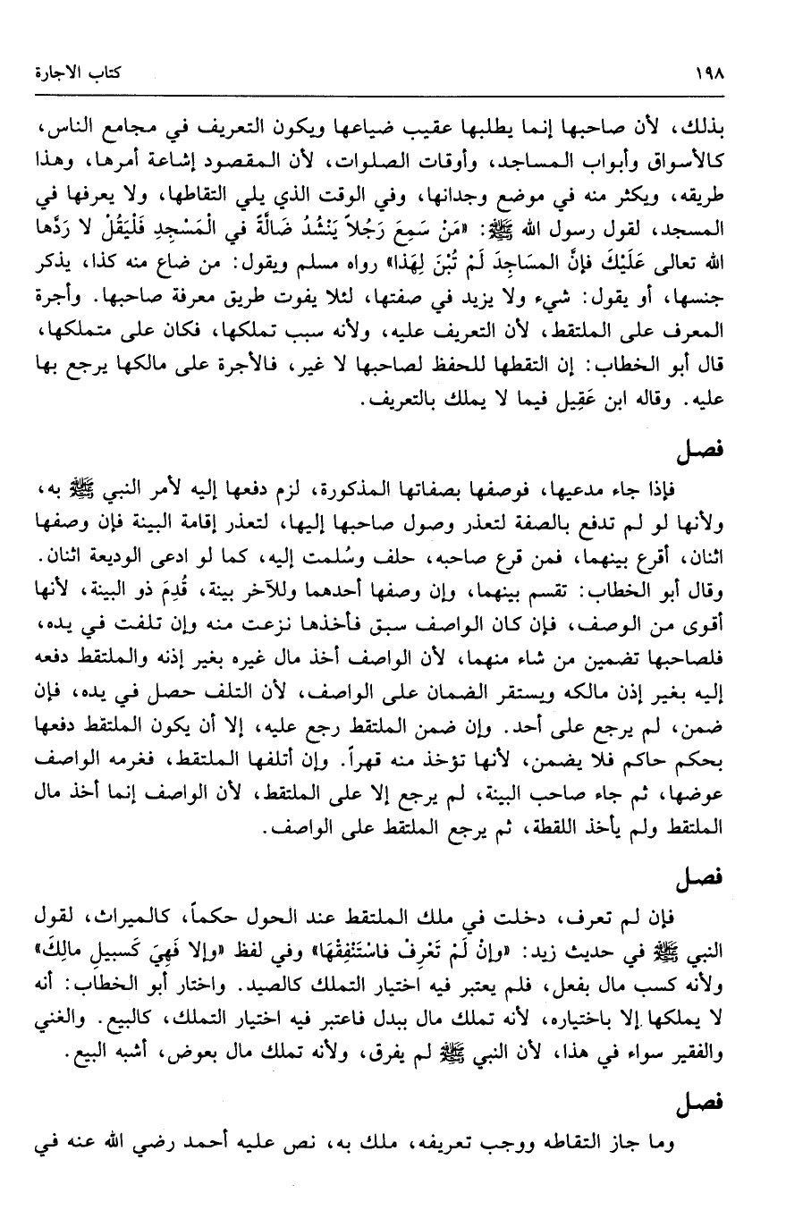 بذلك؛ لأن صاحبها إنما يطلبها عقيب ضياعها، ويكون التعريف في مجامع الناس، كالأسواق وأبواب المساجد، وأوقات الصلوات؛ لأن المقصود إشاعة أمرها، وهذا طريقه، ويكثر منه في موضع وجدانها، وفي الوقت الذي يلي التقاطها، ولا يعرفها في المسجد؛ لقول رسول الله - صَلَّى اللَّهُ عَلَيْهِ وَسَلَّمَ -: «من سمع رجلًا ينشد ضالة في المسجد فليقل: لا ردها الله تعالى عليك، فإن المساجد لم تبن لهذا» رواه مسلم. ويقول: من ضاع منه كذا، يذكر جنسها: أو يقول: شيء ولا يزيد في صفتها؛ لئلا يفوت طريق معرفة صاحبها، وأجرة المعرف على الملتقط؛ لأن التعريف عليه، ولأنه سبب تملكها، فكان على متملكها، قال أبو الخطاب: إن التقطها للحفظ لصاحبها لا غير، فالأجرة على مالكها يرجع بها عليه. وقاله ابن عقيل فيما لا يملك بالتعريف.