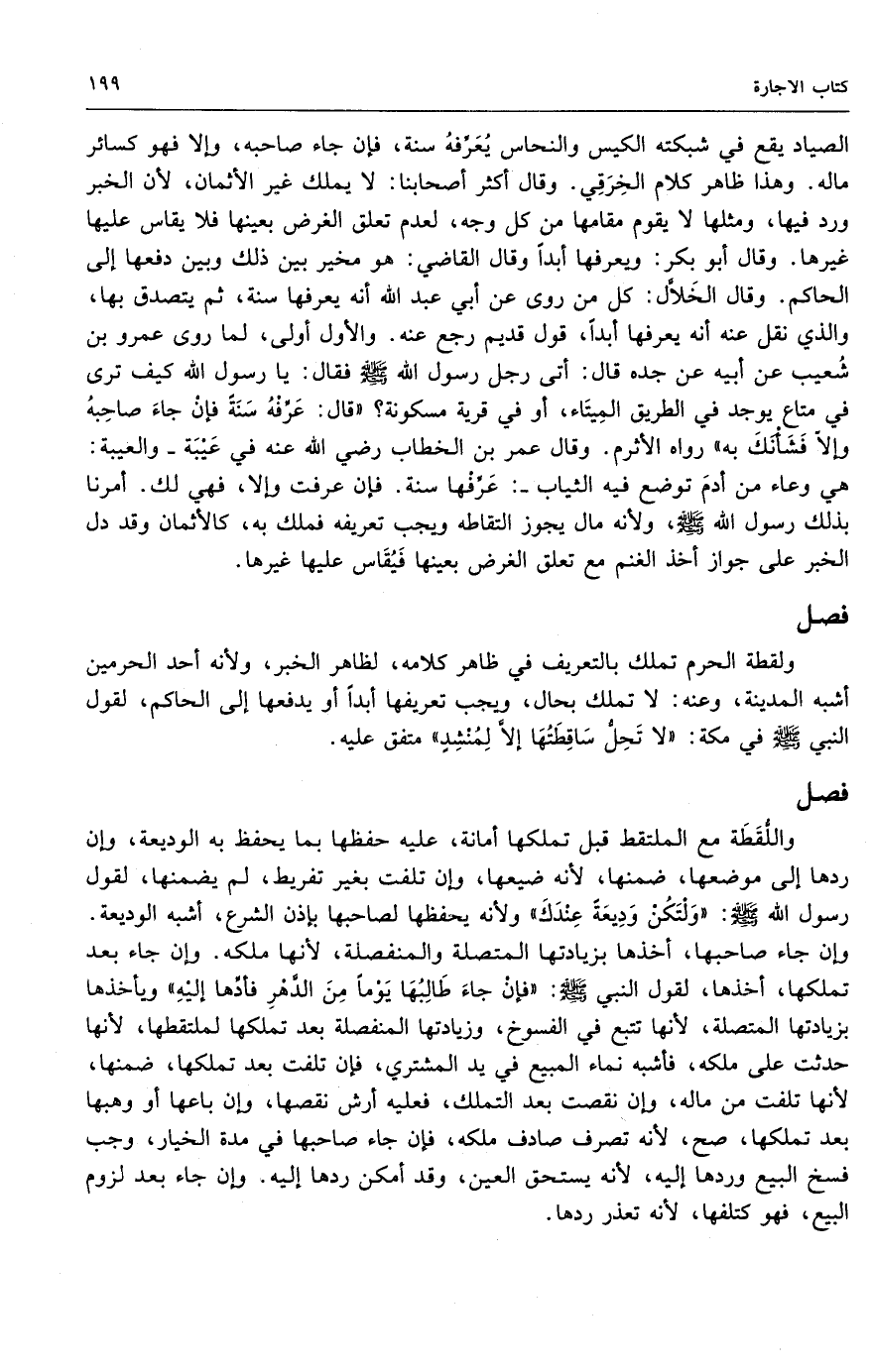 الصياد يقع في شبكته الكيس والنحاس يعرفه سنة، فإن جاء صاحبه، وإلا فهو كسائر ماله. وهذا ظاهر كلام الخرقي. وقال أكثر أصحابنا: لا يملك غير الأثمان؛ لأن الخير ورد فيها، ومثلها لا يقوم مقامها من كل وجه؛ لعدم تعلق الغرض بعينها، فلا يقاس عليها غيرها، وقال أبو بكر: ويعرفها أبدًا، وقال القاضي: هو مخير بين ذلك، وبين دفعها إلى الحاكم. وقال الخلال: كل من روى عن أبي عبد الله أنه يعرفها سنة، ثم يتصدق بها، والذي نقل عنه أنه يعرفها أبدًا، قول قديم رجع عنه، والأول أولى؛ لما روى عمر بن شعيب، عن أبيه، عن جده قال: «أتى رجل رسول الله - صَلَّى اللَّهُ عَلَيْهِ وَسَلَّمَ - فقال: يا رسول الله، كيف ترى في متاع يوجد في الطريق الميتاء، أو في قرية مسكونة؟ قال: عرفه سنة، فإن جاء صاحبه، وإلا فشأنك به» رواه الأثرم. «وقال عمر بن الخطاب - رَضِيَ اللَّهُ عَنْهُ - في عيبة - والعيبة: هي وعاء من أدم توضع فيه الثياب -: عرفها سنة، فإن عرفت وإلا، فهي لك. أمرنا بذلك رسول الله - صَلَّى اللَّهُ عَلَيْهِ وَسَلَّمَ -» ، ولأنه مال يجوز التقاطه، ويجب تعريفه فملك به، كالأثمان وقد دل الخبر على جواز أخذ الغنم مع تعلق الغرض بعينها، فيقاس عليها غيرها.