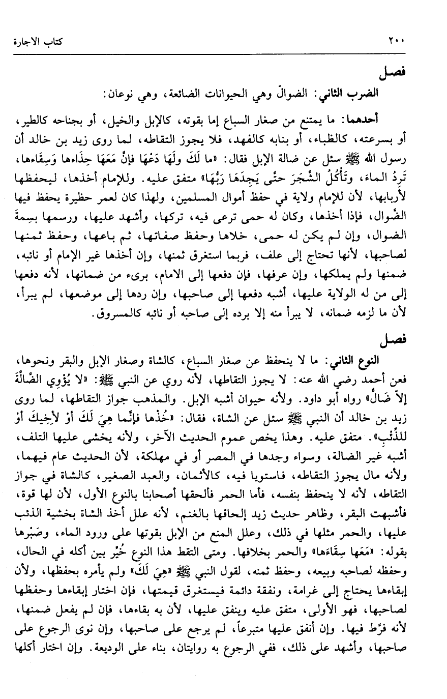 الضرب الثاني: الضوال، وهي الحيوانات الضائعة، وهى نوعان: