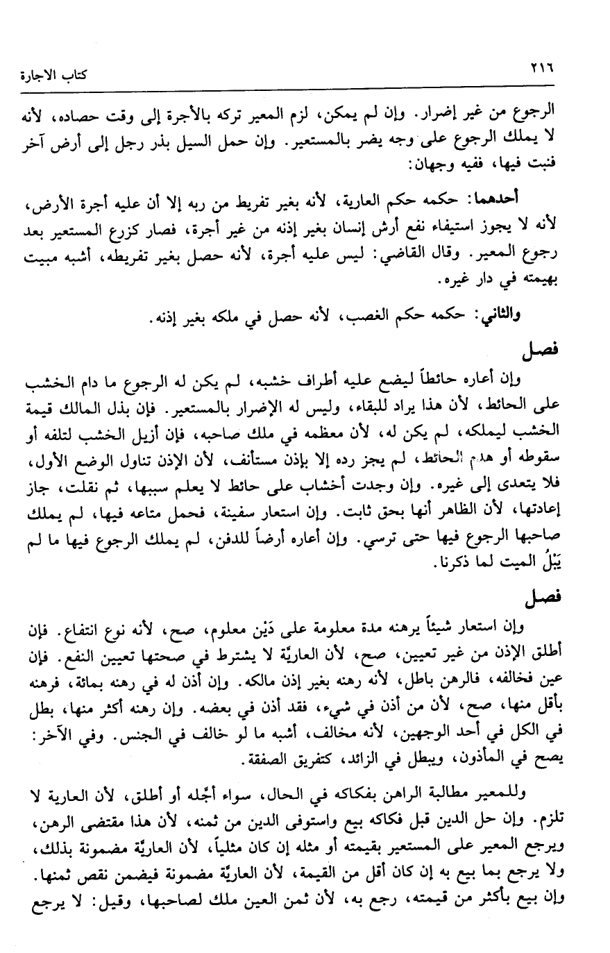 وإن أعاره حائطًا ليضع عليه أطراف خشبه، لم يكن له الرجوع ما دام الخشب على الحائط؛ لأن هذا يراد للبقاء، وليس له الإضرار بالمستعير، فإن بذل المالك قيمة الخشب ليملكه، لم يكن له؛ لأن معظمه في ملك صاحبه، فإن أزيل الخشب لتلفه أو سقوطه أو هدم الحائط، لم يجز رده إلا بإذن مستأنف؛ لأن الإذن تناول الوضع الأول، فلا يتعدى إلى غيره، وإن وجدت أخشاب على حائط لا يعلم سببها، ثم نقلت جاز إعادتها؛ لأن الظاهر أنها بحق ثابت، وإن استعار سفينة، فحمل متاعه فيها، لم يملك صاحبها الرجوع فيها حتى ترسي. وإن أعاره أرضًا للدفن، لم يملك الرجوع فيها ما لم يبل الميت لما ذكرنا.