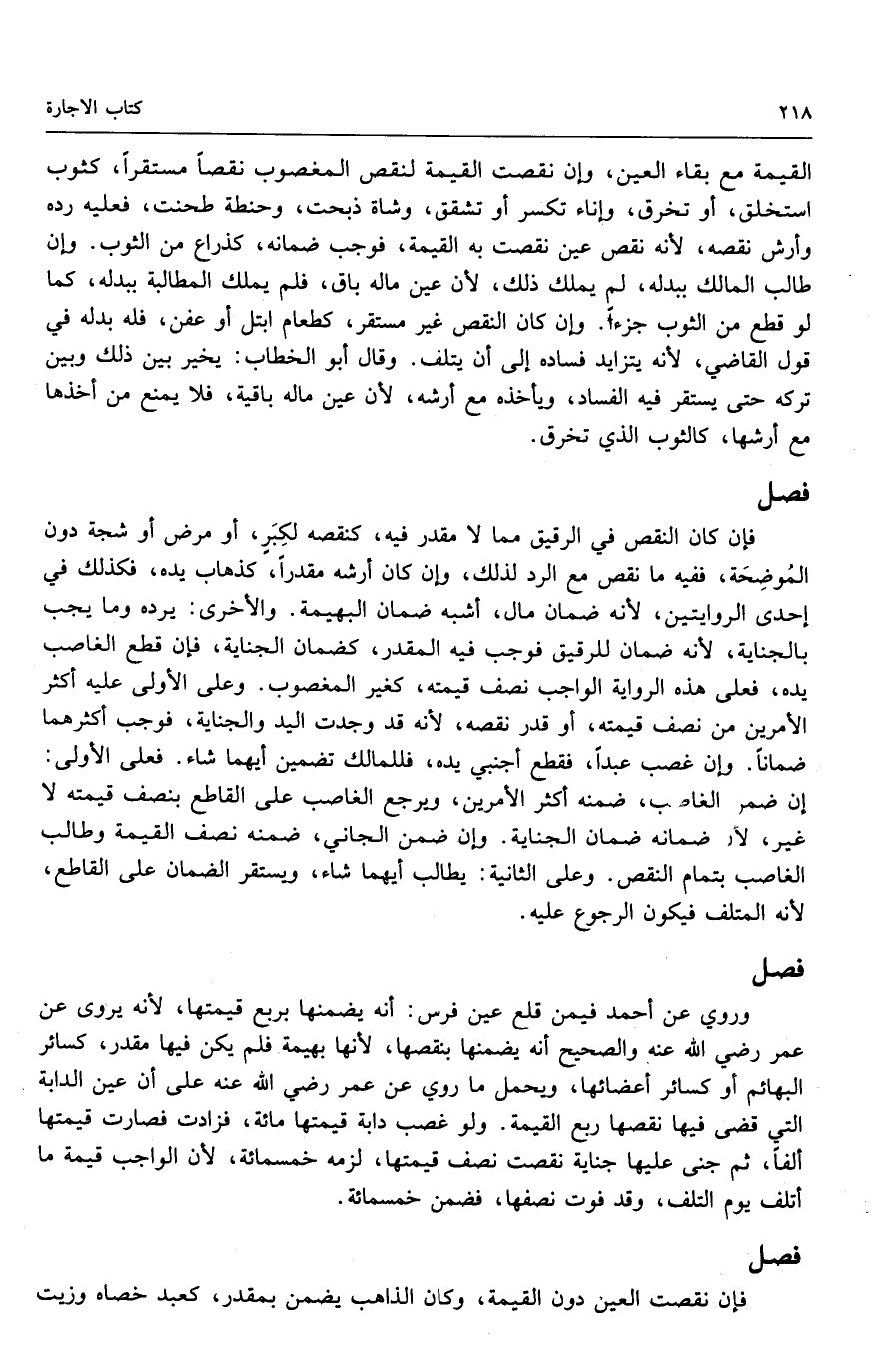 القيمة مع بقاء العين، وإن نقصت القيمة لنقص المغصوب نقصًا مستقرًا، كثوب استخلق، أو تخرق، وإناء تكسر أو تشقق، وشاة ذبحت، وحنطة طحنت، فعليه رده وأرش نقصه؛ لأنه نقص عين نقصت به القيمة، فوجب ضمانه، كذراع من الثوب، وإن طالب المالك ببدله، لم يملك ذلك؛ لأن عين ماله باق، فلم يملك المطالبة ببدله، كما لو قطع من الثوب جزءًا، وإن كان النقص غير مستقر، كطعام ابتل أو عفن، فله بدله في قول القاضي؛ لأنه يتزايد فساده إلى أن يتلف، وقال أبو الخطاب: يخير بين ذلك وبين تركه حتى يستقر فيه الفساد، ويأخذه مع أرشه؛ لأن عين ماله باقية، فلا يمنع من أخذها مع أرشها، كالثوب الذي تخرق.