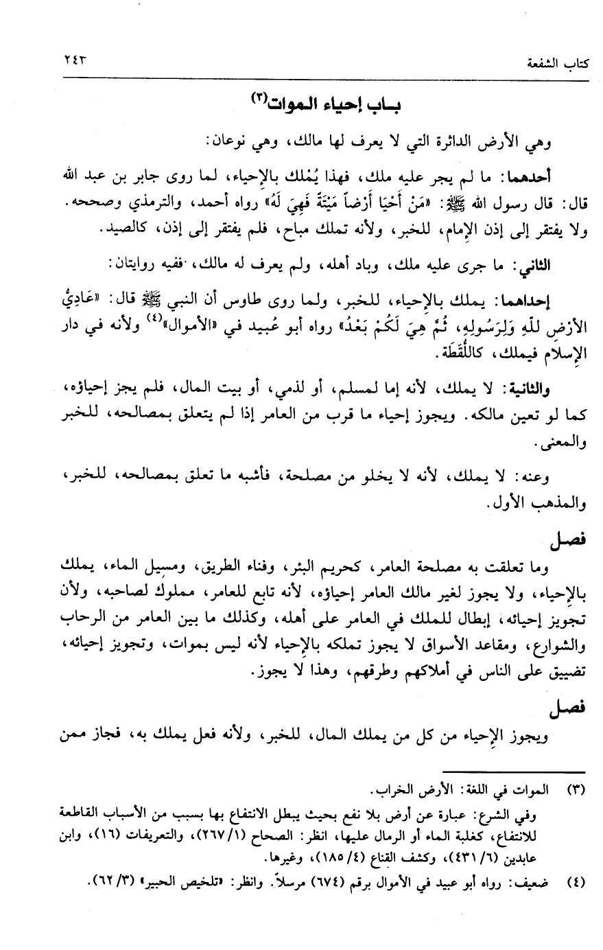 أحدهما: ما لم يجر عليه ملك، فهذا يملك بالإحياء؛ لما روى جابر بن عبد الله قال: قال رسول الله - صَلَّى اللَّهُ عَلَيْهِ وَسَلَّمَ -: «من أحيا أرضًا ميتة فهي له» رواه أحمد، والترمذي وصححه. ولا يفتقر إلى إذن الإمام للخبر، ولأنه تملك مباح، فلم يفتقر إلى إذن كالصيد.